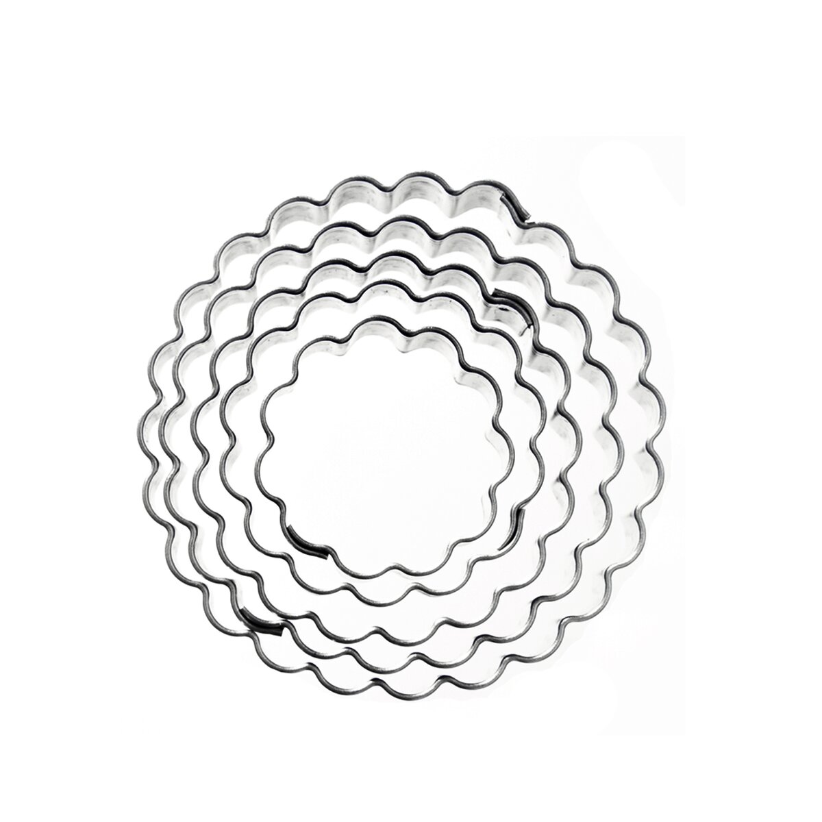 Kód produktu 124943Sada 5 kusů nerezových vykrajovaček KOLEČKO s vlnkovaným okrajem o průměru 2,5-5 cm pro kreativní pečení cukroví a sušenek nebo práci s marcipánem.