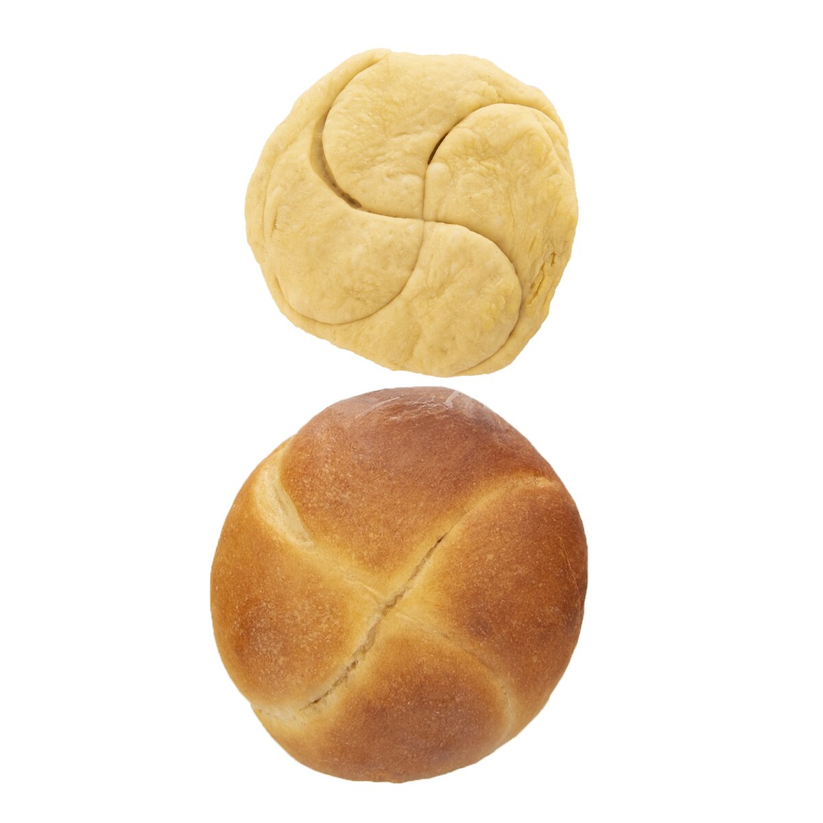 Z vykynutého těsta uděláte bochánek a na něm jen vykrojíte raženkou typický vzor. Poté potřete vajíčkem, posypete solí, kmínem nebo oblíbenými semínky a upečete.