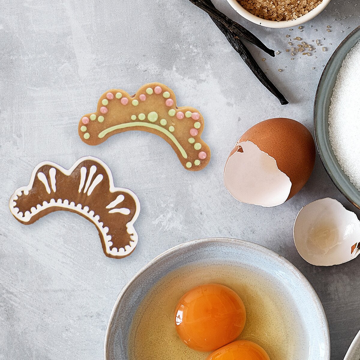 Pak už stačí jen zdobit bílkovou polevou, čokoládou, nebo použít dekorativní válečky a razítka z našeho sortimentu.