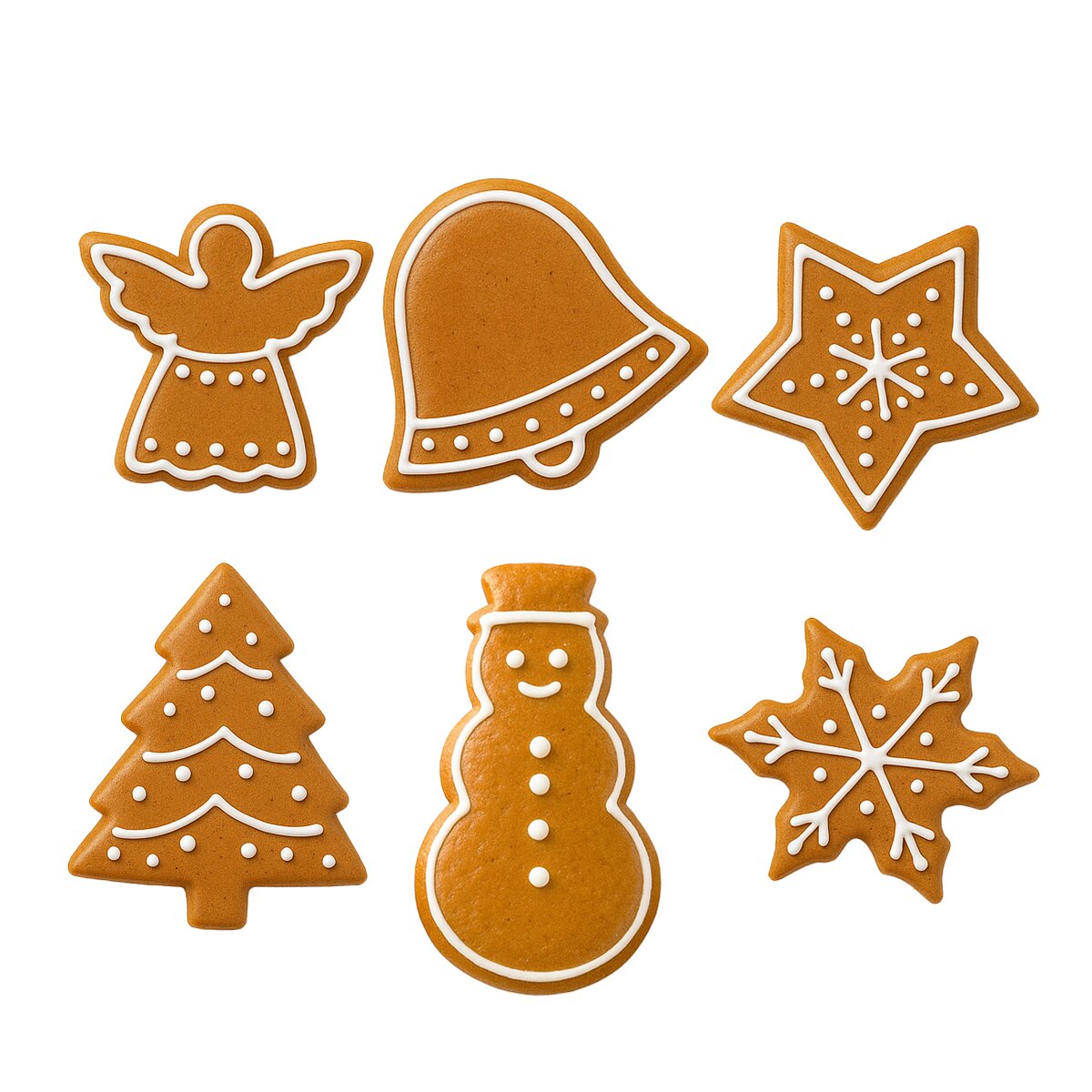 Kód produktu 132610Sada 6 různých vánočních tvarů - sněhulák, vločka, anděl, zvonek, hvězda a stromeček pro vykrajování perníčků, sušenek i pro jiné kreativní práce.
