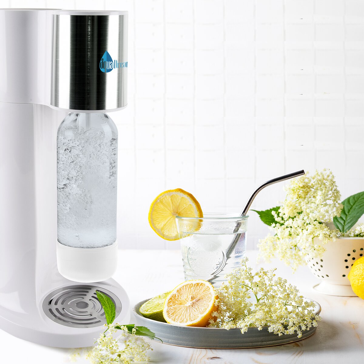 Výrobník AquaDream v moderní bílé barvě poskytne možnost domácí výroby perlivé vody nebo limonády, a to velmi snadno, rychle a levně. Čerstvé ovoce nebo sirupy různých příchutí promění připravenou sodovku na skvělou domácí limonádu. Objem lahve je 1,1 l.