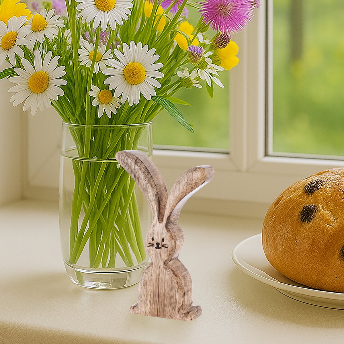 Kód produktu 351879Milá jarní dekorace ve tvaru ušatého zajíčka s krásnou texturou mangového dřeva je hezkým doplňkem do interiéru v období Velikonoc i milým dárkem.
