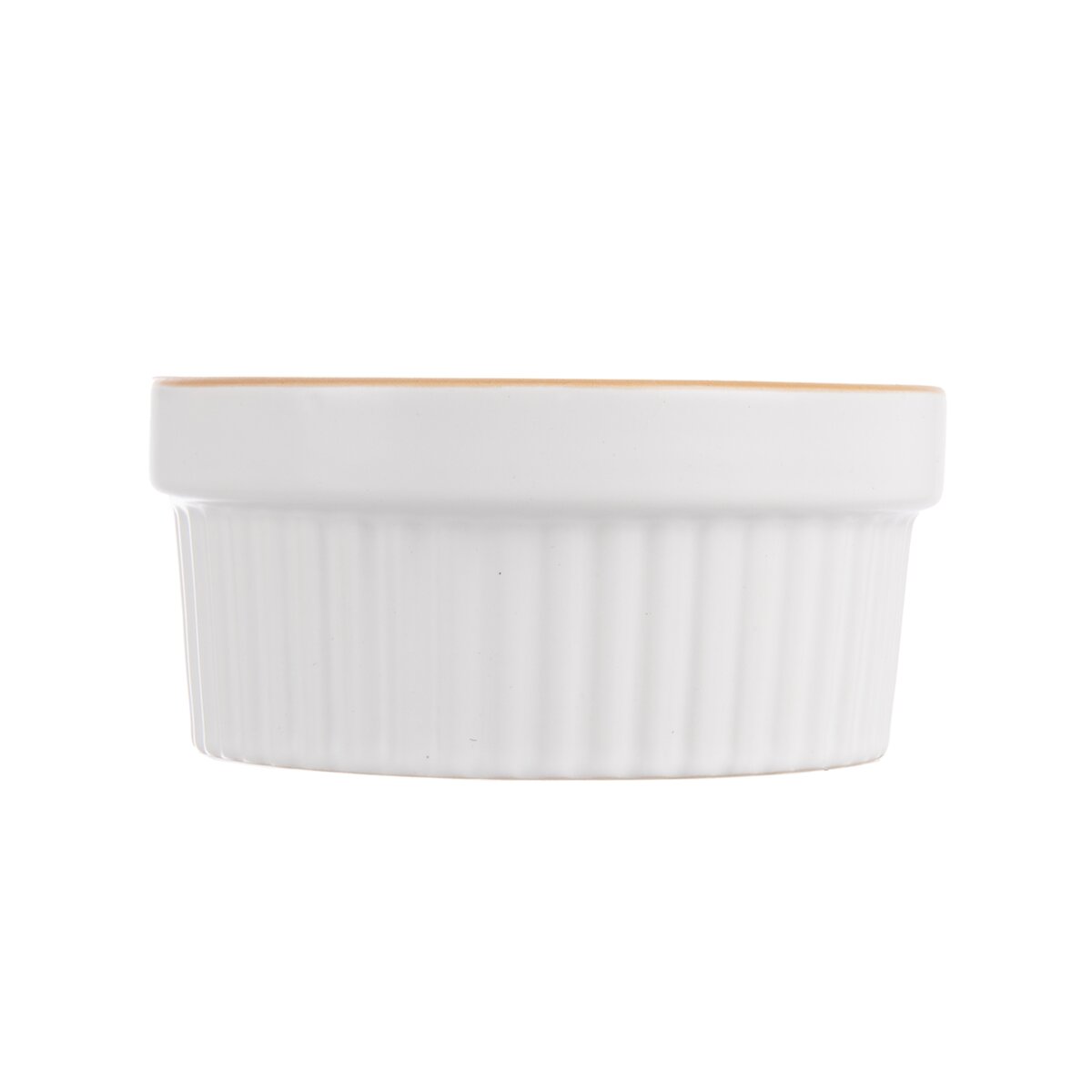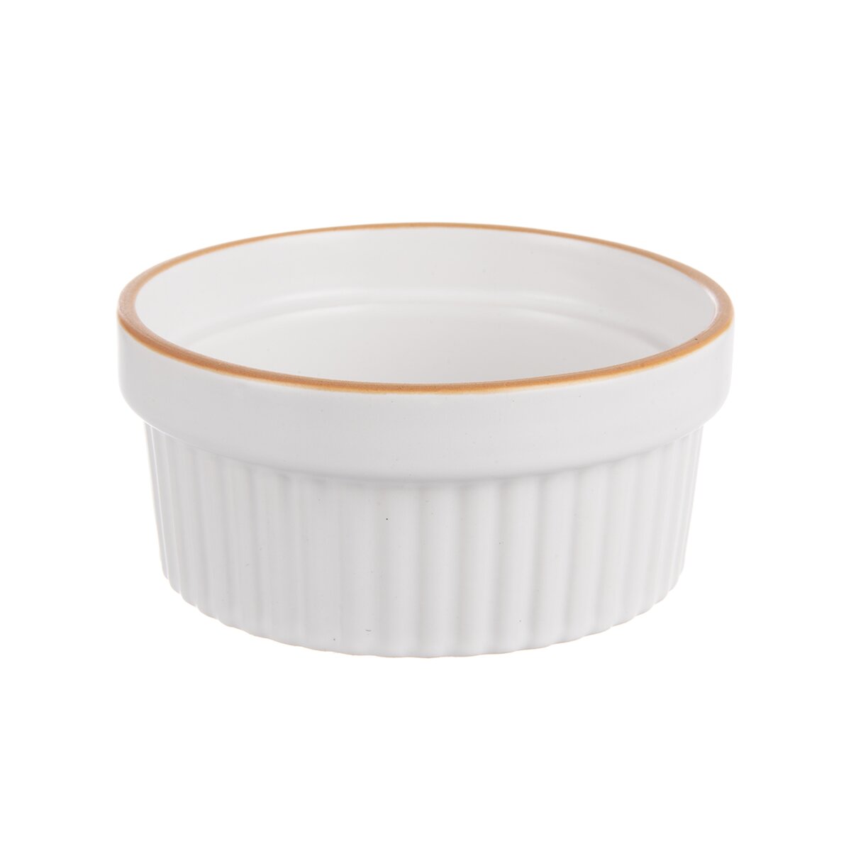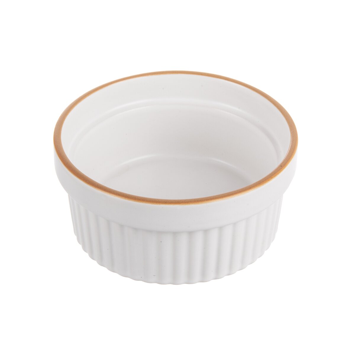 Kód produktu 112837Bílá keramická miska s hnědým lemem o průměru 11 cm a o objemu 290 ml je určena k pečení, zapékání a servírování různých pokrmů, suflé, paštik, pomazánek i dipů.