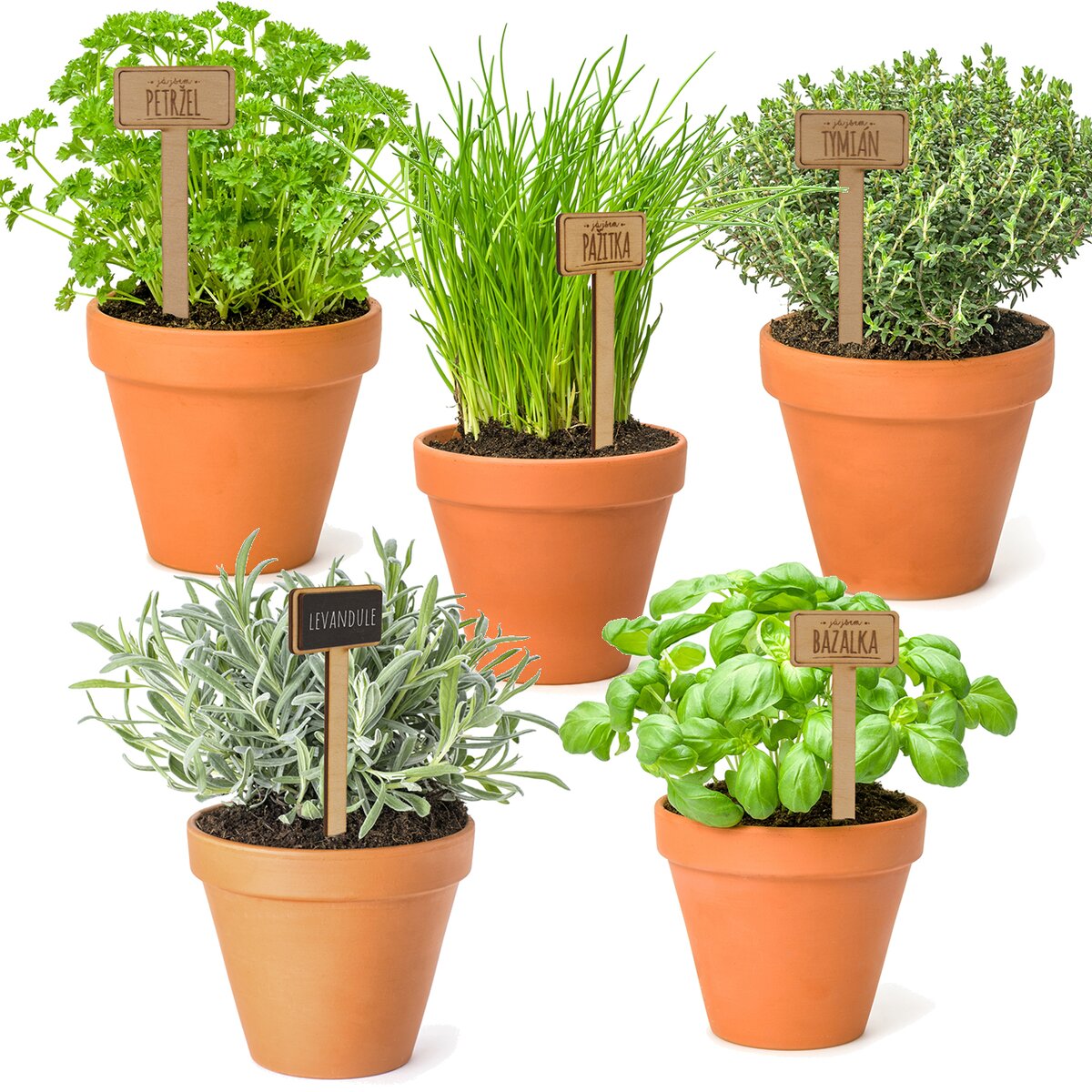 Květináč nebo truhlík postavený na parapet, kuchyňský ostrůvek, do výklenku, na balkón či terasu, bude přehledně označený touto decentní jmenovkou, abyste bylinky snadno rozeznali.