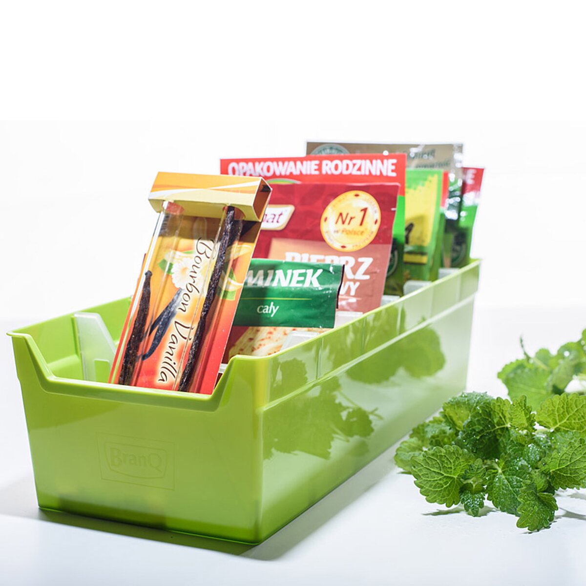 Plastový zásobník do kuchyně, který zajistí přehledné uspořádání sáčků s kořením.