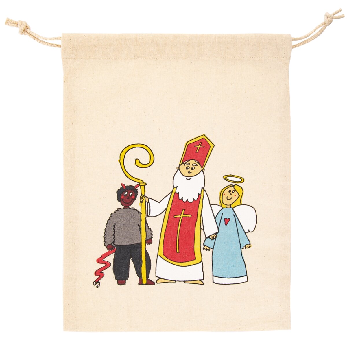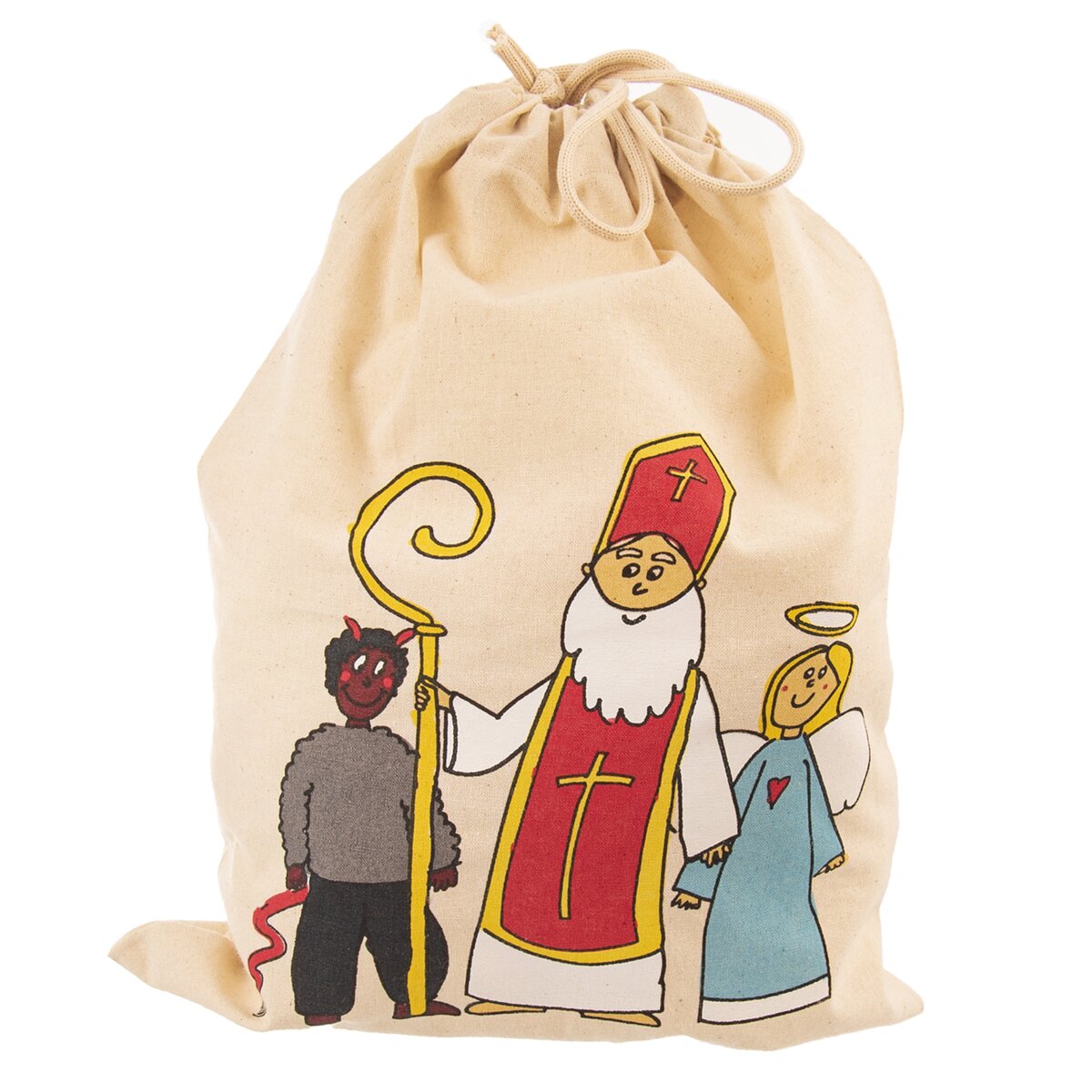 Zatahovací sáček ze 100% bavlny, s milým motivem Mikuláše, anděla a čerta. Můžete ho naplnit ovocem, dobrotami, pro zlobivé děti přidat brambory a uhlí.