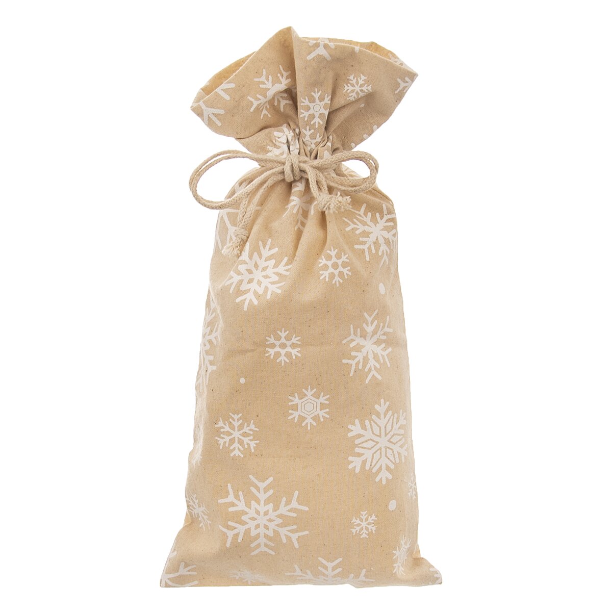 Látkový sáček s dekorem vloček je určen k uložení lahve vína nebo jiného oblíbeného alkoholu, ale i na další drobnosti nebo tzv. měkké dárky, které se špatně balí do balicího papíru. A na rozdíl od papíru jej lze používat opakovaně.