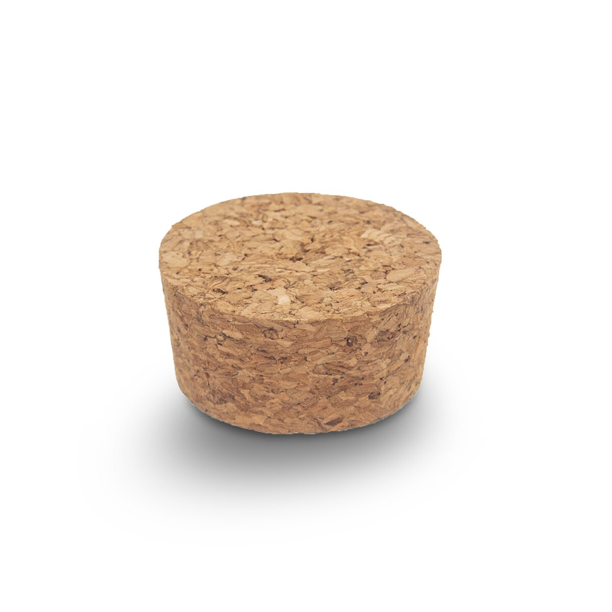 Korkové zátky kónického tvaru pro uzavření skleněných lahví se širokým hrdlem a velkých demižonů.