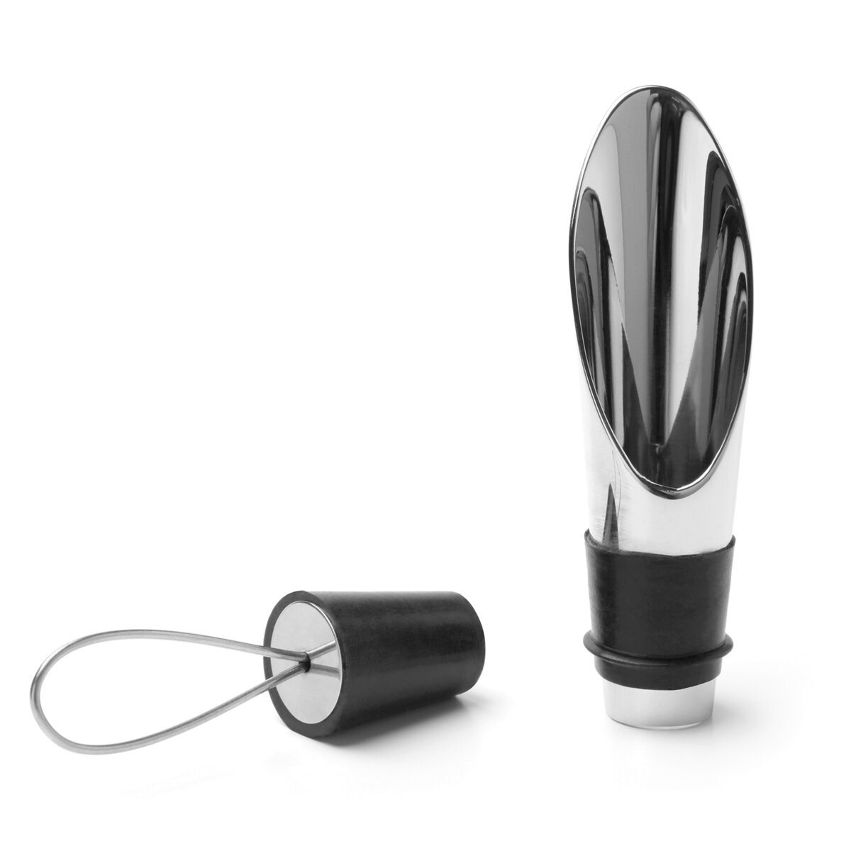Už žádné kapky na stole ani stékání vína po láhvi. Stylová dvojitá zátka z leštěné nerezové oceli a plastu TPR, která zamezí rozlití vína a jeho zvětrání. Po vyjmutí vnitřní zátky zůstane na láhvi praktická nálevka, která zamezí rozlití vína.