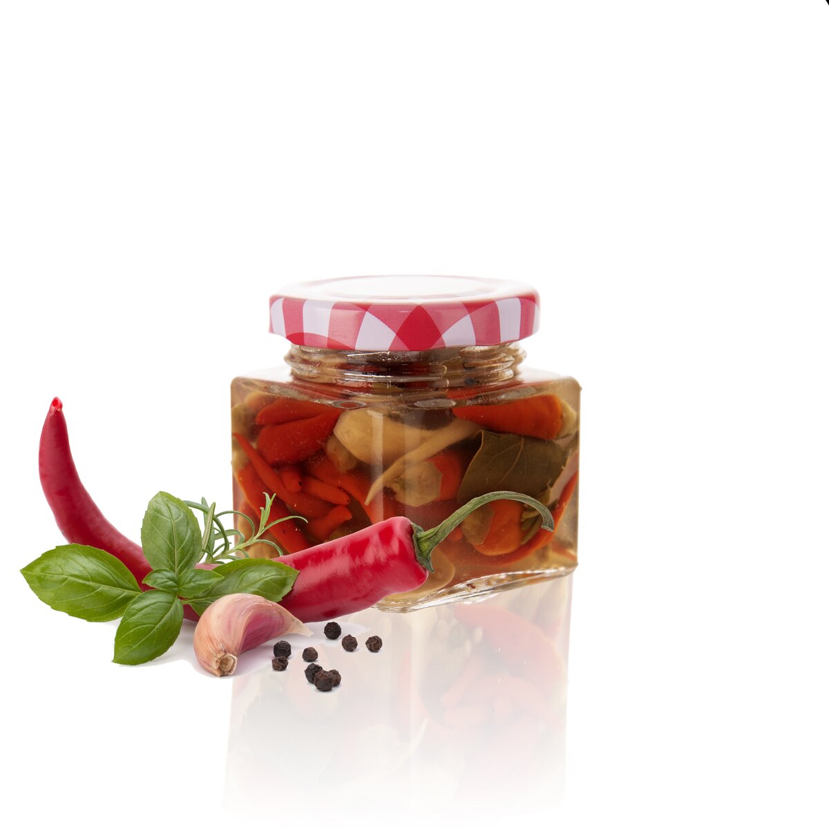 Kód produktu 129708Sada 5 kusů malých hranatých zavařovacích skleniček s károvaným víčkem, o objemu 50 ml. Ideální pro uložení koření, zavařování pečeného čaje, pesta a jiných pochutin.