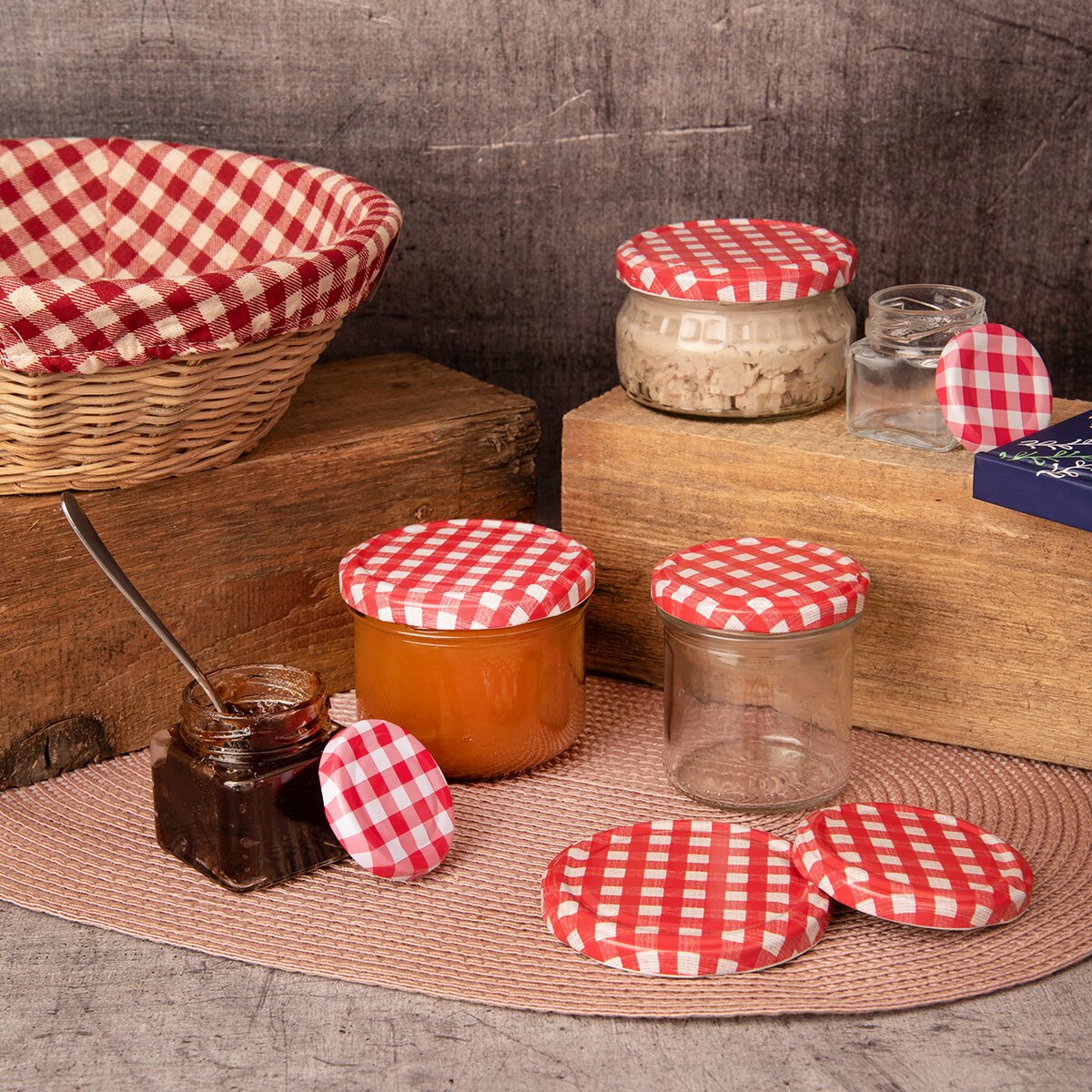 Kód produktu 129727Menší kulatá zavařovací sklenice o objemu 260 ml, s károvaným víčkem na závit. Ideální k zavařování přesnídávek, brusinek, domácích paštik a drobných lesních hub.