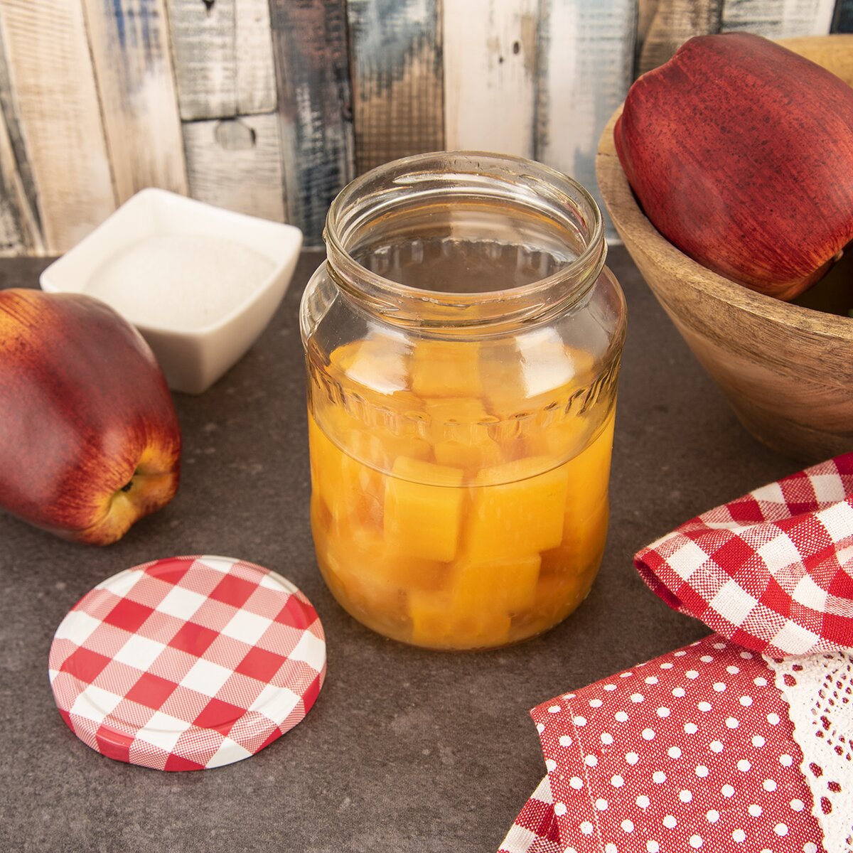 Kód produktu 151349Sada 10 kovových zavařovacích víček pr. 85 mm s kostkovaným dekorem jsou určené na sklenice se závitem, jež uchovají vaši letošní úrodu ze zahrádky, čalamády, domácí sirupy, marmelády a další.