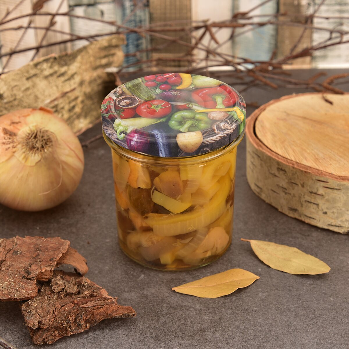 Zavařovací víčka se zeleninovým potiskem jsou nezbytným pomocníkem při zavařování, zakonzervování vaší úrody ze zahrádky, zeleniny z farmářských trhů nebo přímo od pěstitelů, při výrobě nakládaných okurek, paprik, rajčat i nejrůznějších čalamád.