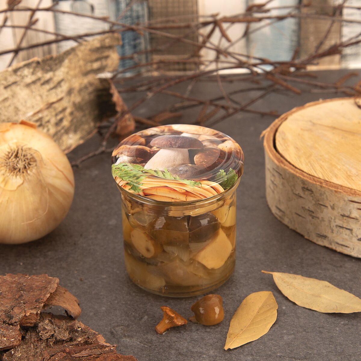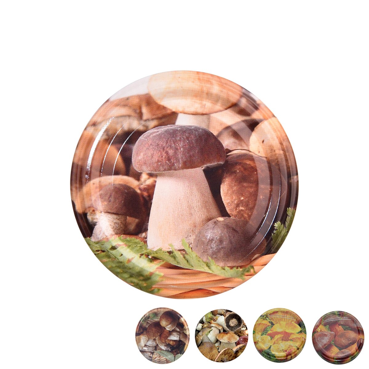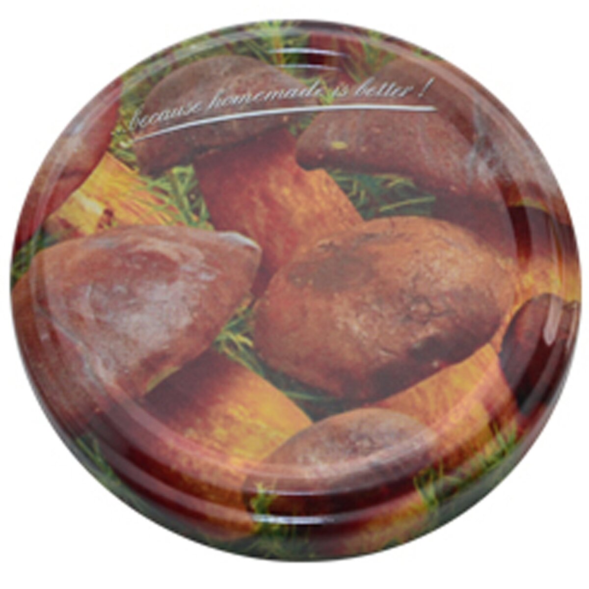 Zavařovací víčka se houbovým potiskem jsou nezbytným pomocníkem při zavařování hub i zeleninových směsí.