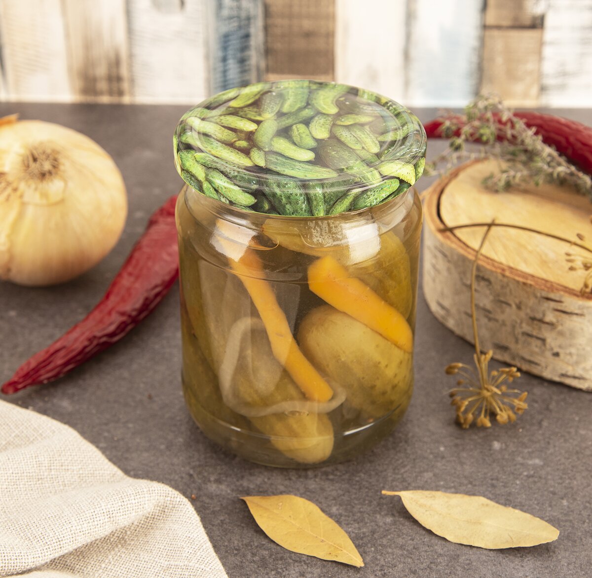 Zavařovací víčka se zeleninovým potiskem jsou nezbytným pomocníkem při zavařování, zakonzervování vaší úrody ze zahrádky, zeleniny z farmářských trhů nebo přímo od pěstitelů, při výrobě nakládaných okurek, paprik i nejrůznějších čalamád.