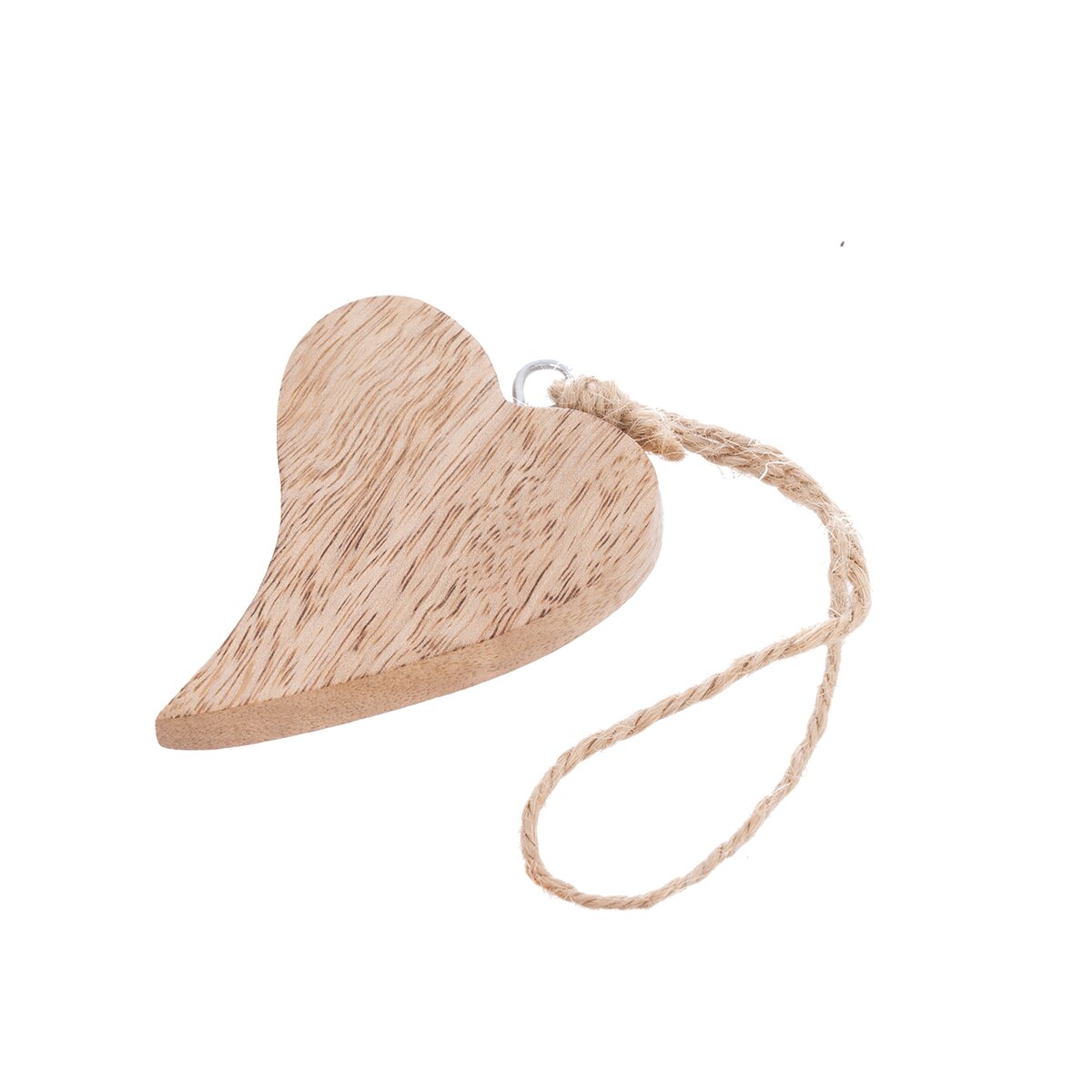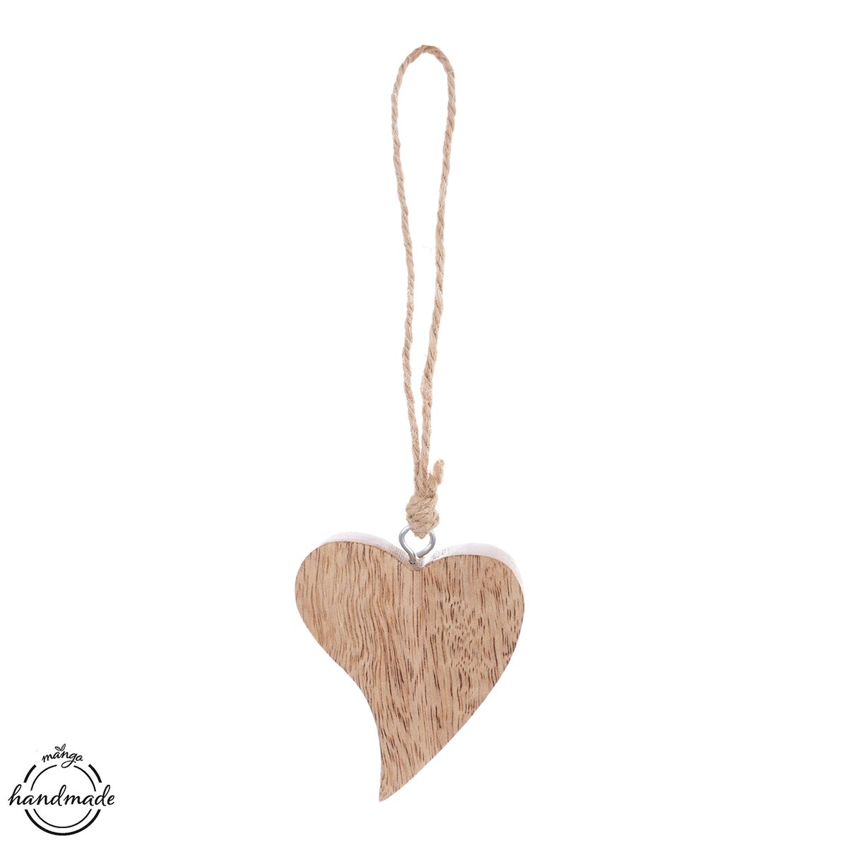 Krásná závěsná dekorace ve tvaru prohnutého srdce je vyrobena z mangového dřeva. Bude krásným dárkem pro vaše nejbližší, zavěšené srdce prohřeje díky teplému tónu použitého materiálu prostor, kde bude umístěno, vnese do něho lásku a teplo domova. Má krásnou kresbu, díky které je každý kousek originálem.