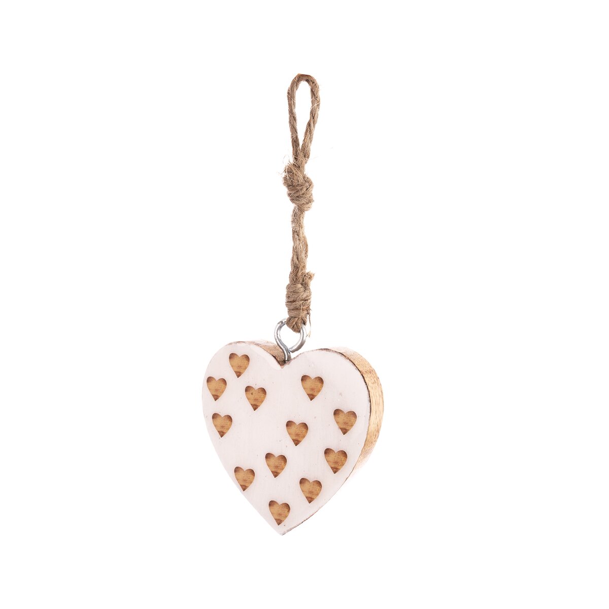 Kód produktu 351907Závěsná dekorace srdce z mangového dřeva, vhodná k celoročnímu využití i jako dárek.