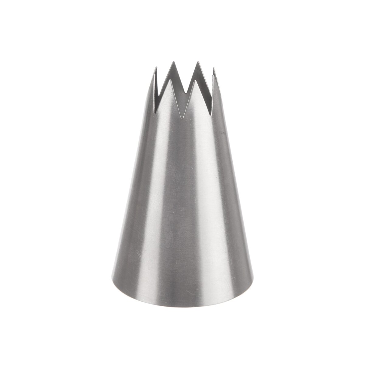 Kód produktu 153045Vyšší zdobicí nerezová špička s 8 cípy je vhodná ke zdobení dortů, cupcaků a zákusků krémem nebo šlehačkou.