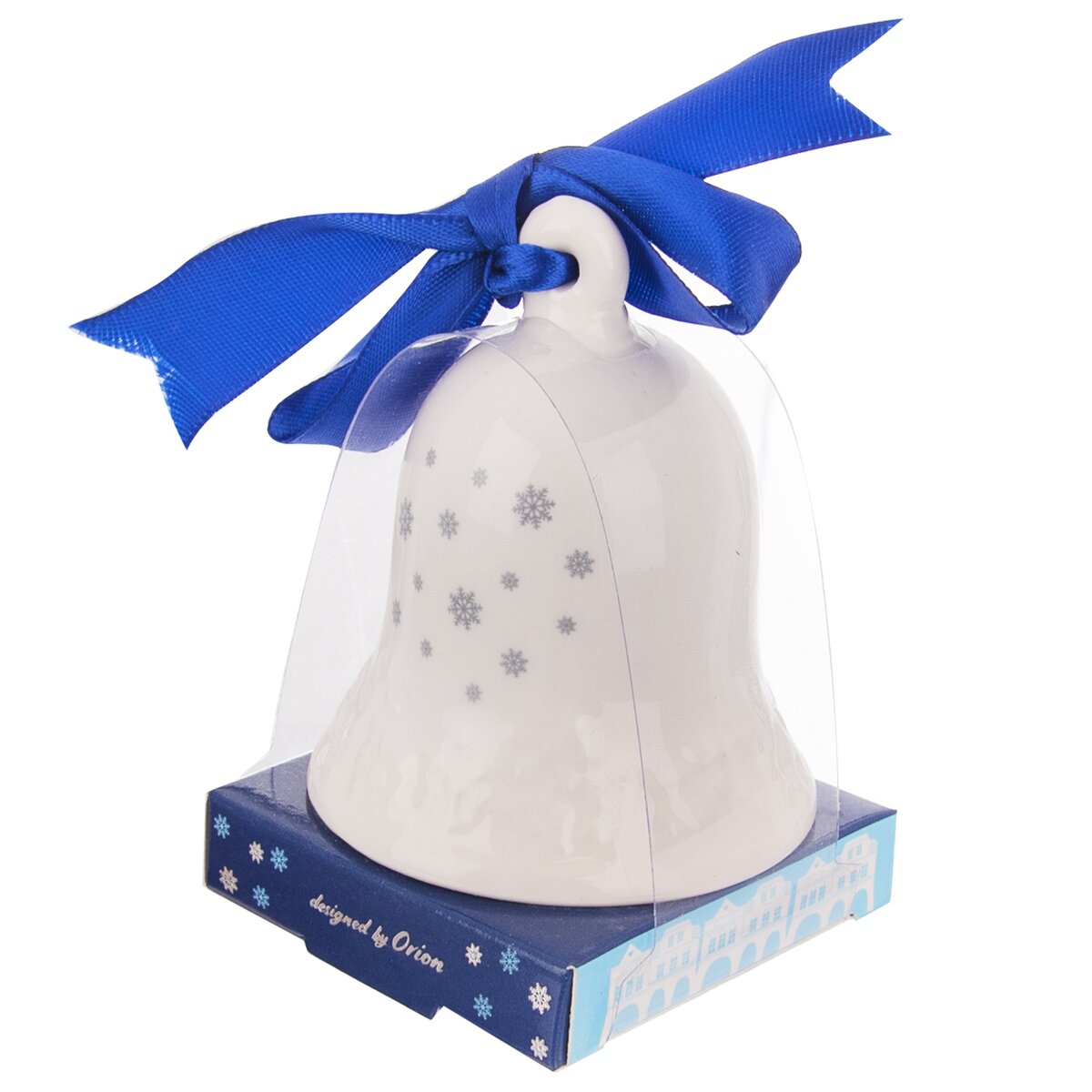 Kód produktu 351822Keramický zvoneček s vánočním motivem a modrou mašlí v dárkovém balení.