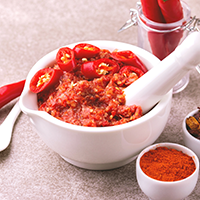 – je pikantní omáčka z feferonek, olivového oleje, česneku, koriandru a dalších surovin, která má opravdu říz. Je typická pro blízkovýchodní kuchyni, plná dráždivé, spalující chuti.