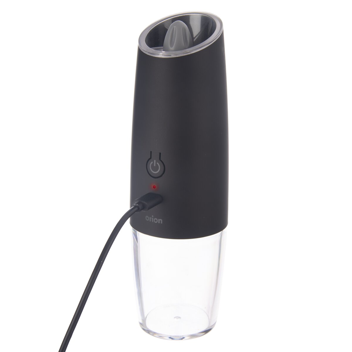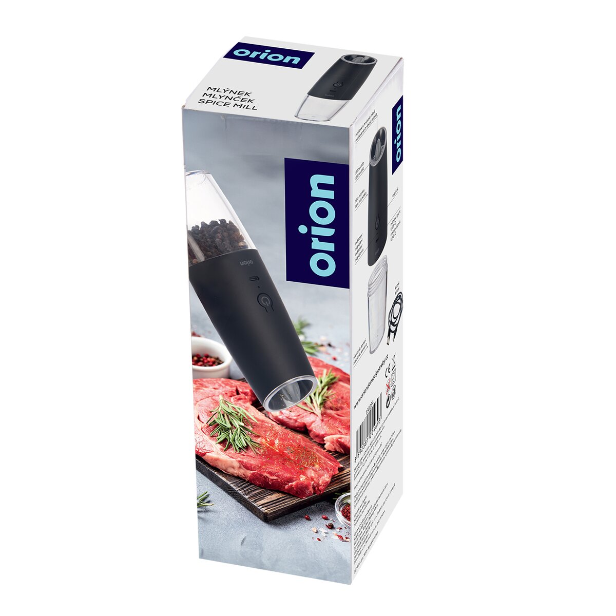Kód produktu 130234Elektrický mlýnek na pepř, sůl nebo jiné koření velmi snadno čerstvě namele koření při dokončování pokrmů, dochutí hotová jídla přímo u stolu. Opatřen LED světlem, nabíjení zajistí jednoduše kabel, který je součástí balení.