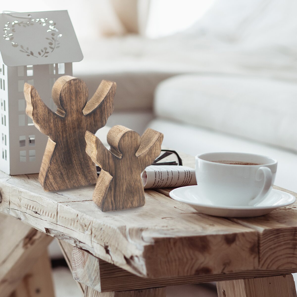 Anděl z mangového dřeva je ručně vyráběná dekorace, která potěší vaše blízké v každém ročním období. Díky unikátní kresbě dřeva je každý kus originál. Tato stylová figurka z kolekce MANGO vnese do vašeho domova útulnou a hřejivou atmosféru. Andělíček vyjadřuje nejrůznější pocity: radost, lásku, něhu a třeba i víru ve šťastnou budoucnost.