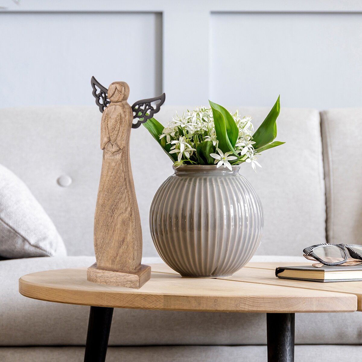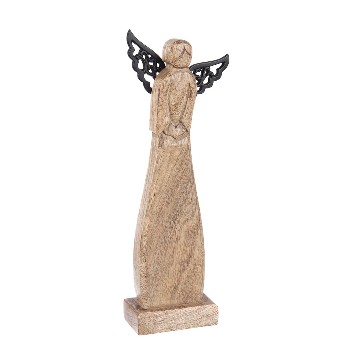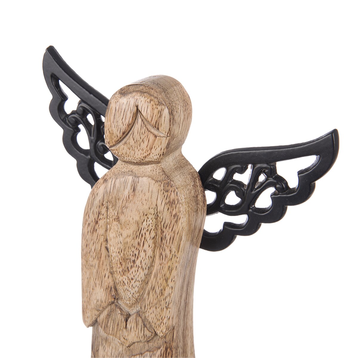 Více informacíKrásný anděl z mangového dřeva je stylovou dekorací i krásným dárkem nejen o svátcích, ale vašim blízkým nebo partnerce udělá radost kdykoliv. Unikátní kresba každého kusu okouzlí milovníky dřeva, ať už preferují minimalismus, který takovéto přírodní prvky v interiéru trochu zútulní, nebo vyznavače rustikálního, hygge stylu. Má podstavec a černá kovová křídla.