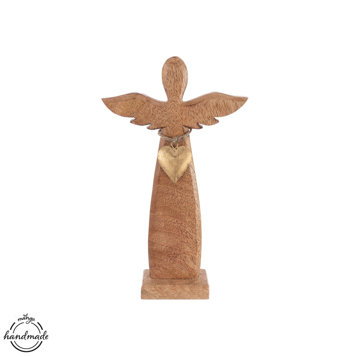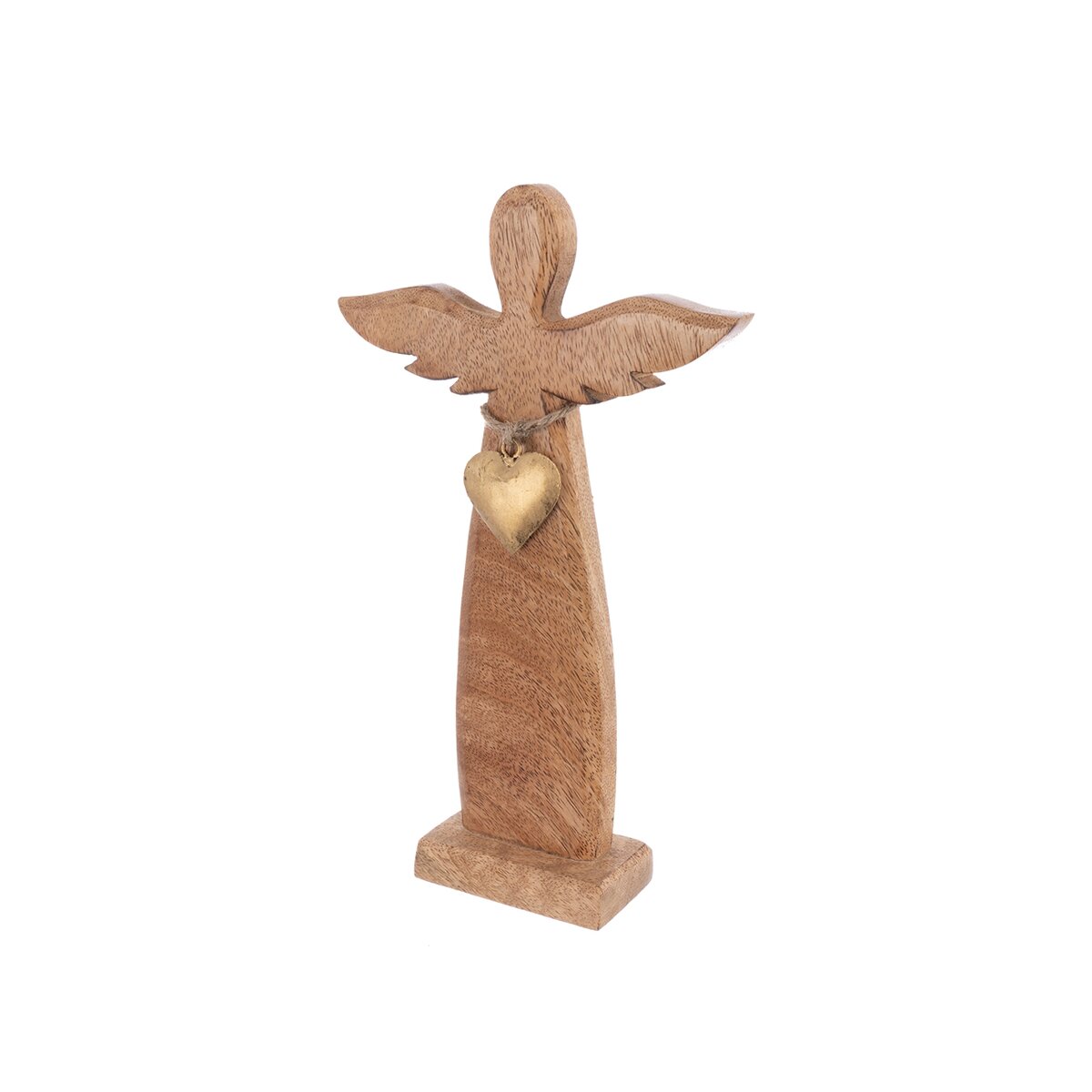 Kód produktu 351884Menší dekorace ANDĚL s krásnou texturou mangového dřeva je doplněn kovovým srdíčkem ve zlatém odstínu. Ideální jako dárek nebo stylový kousek do interiéru.