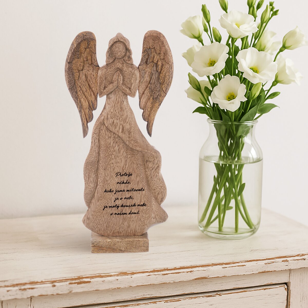 Kód produktu 351894Dřevěný anděl s citátem o lásce a vzpomínkách je dojemnou dekorací, která symbolizuje přítomnost milovaných, kteří zůstávají v našem srdci.