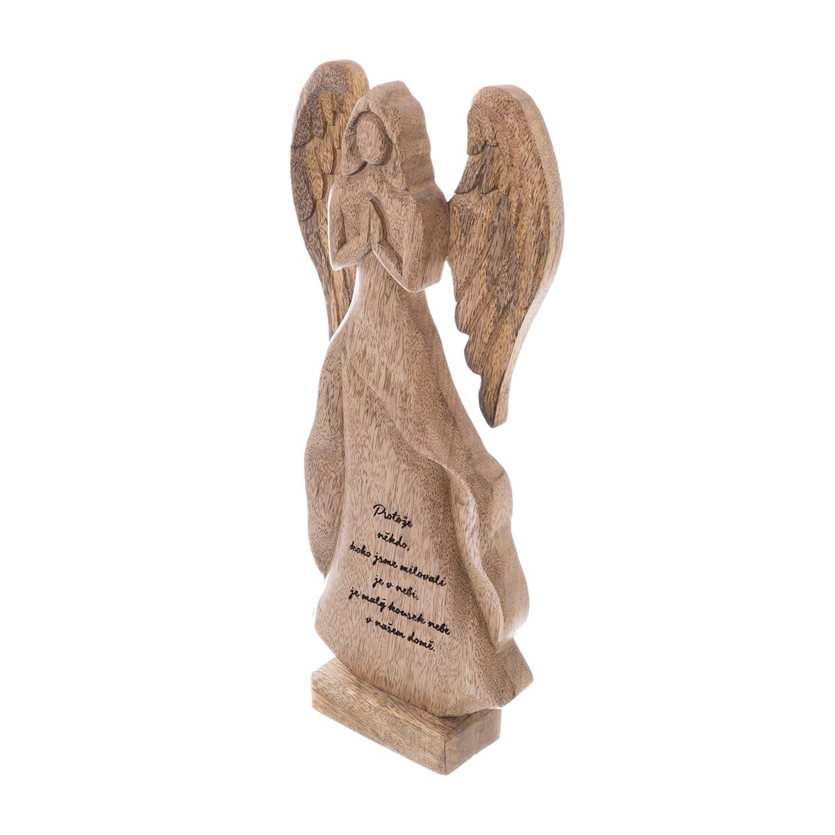 Více informacíAnděl z přírodního mangového dřeva vnese do vašeho domova dotek vzpomínek, lásky a klidu. Tato nádherná dekorace okouzlí svým jednoduchým, ale zároveň silně působivým designem, který podtrhuje přirozená kresba dřeva. Každý anděl je originál – díky ručnímu zpracování a přírodnímu materiálu. Krásný a smysluplný doplněk domova.