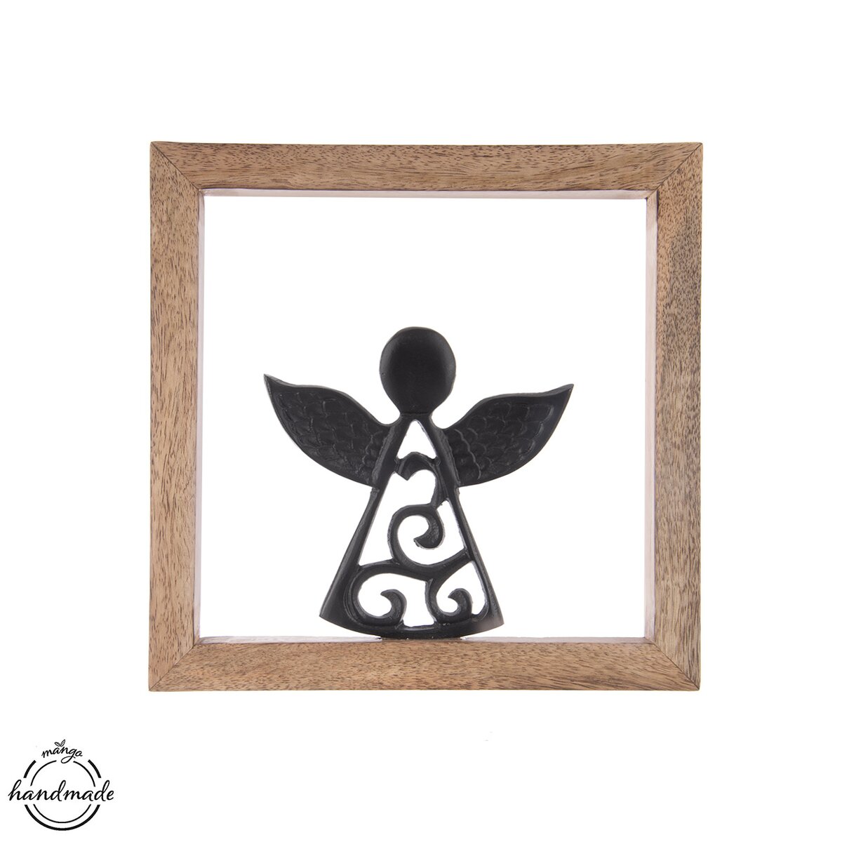 Anděl symbolizuje pohodu, něhu, empatii a vykouzlí příjemnou atmosféru plnou lásky v každém příbytku. Unikátní kresba dřeva mangovníku okouzlí milovníky hygge stylu, jednoduché, strohé interiéry příjemně zútulní. Rámeček stačí zavěsit na zeď nebo jej opřít o komodu, postavit jej do knihovny nebo na polici.