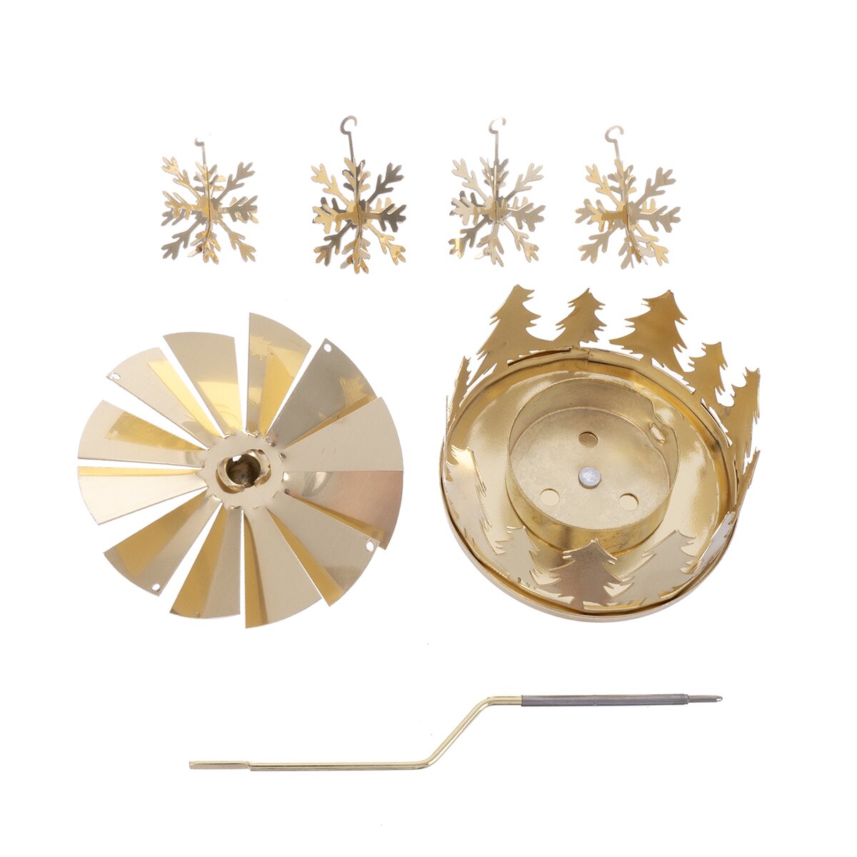 Tato vánoční dekorace výšky 13,5 cm je vyrobená z kovu s galvanickým povrchem a je složena z několika částí. Stačí zapálit čajovou svíčku a teplo z plamínku roztáčí otočný mechanismus.