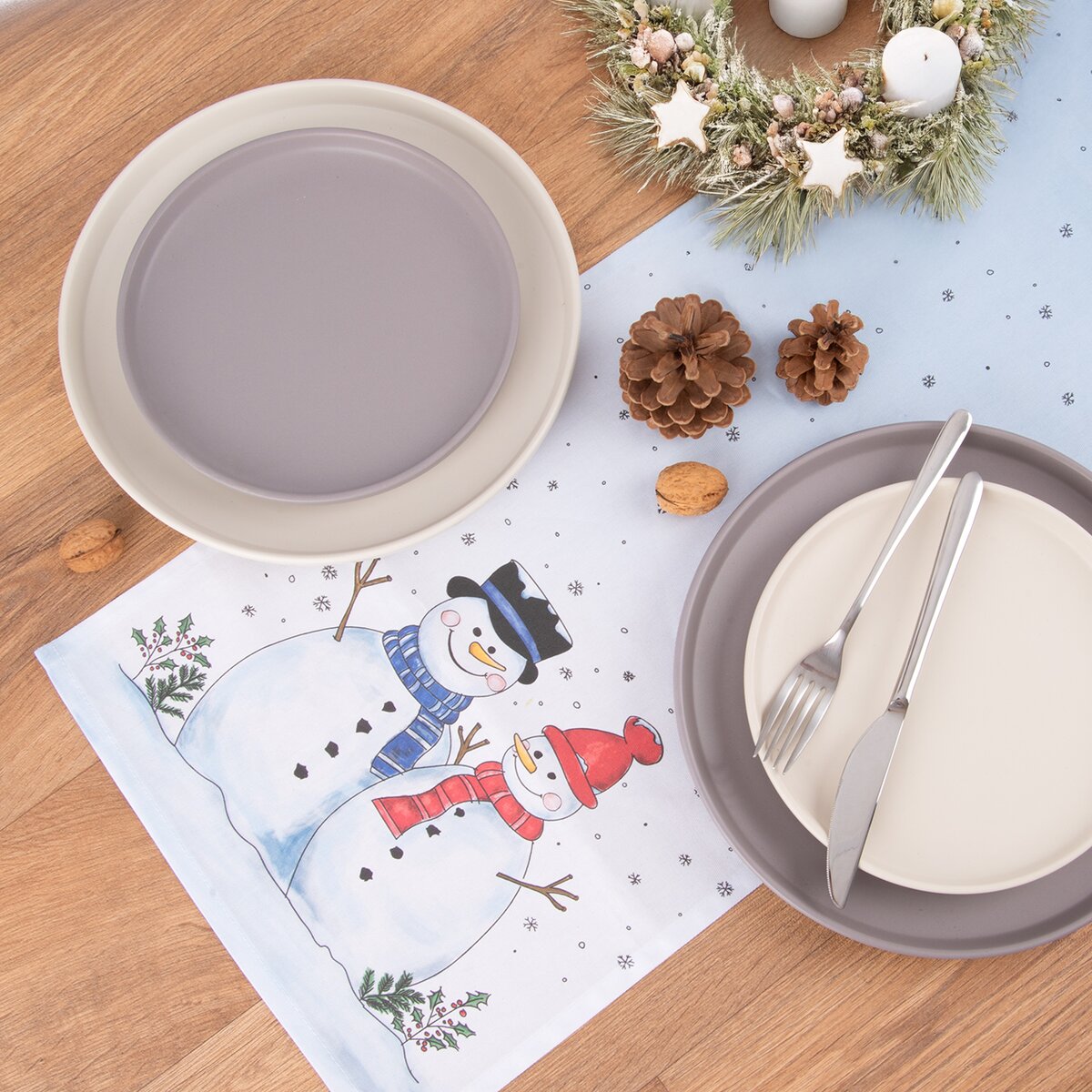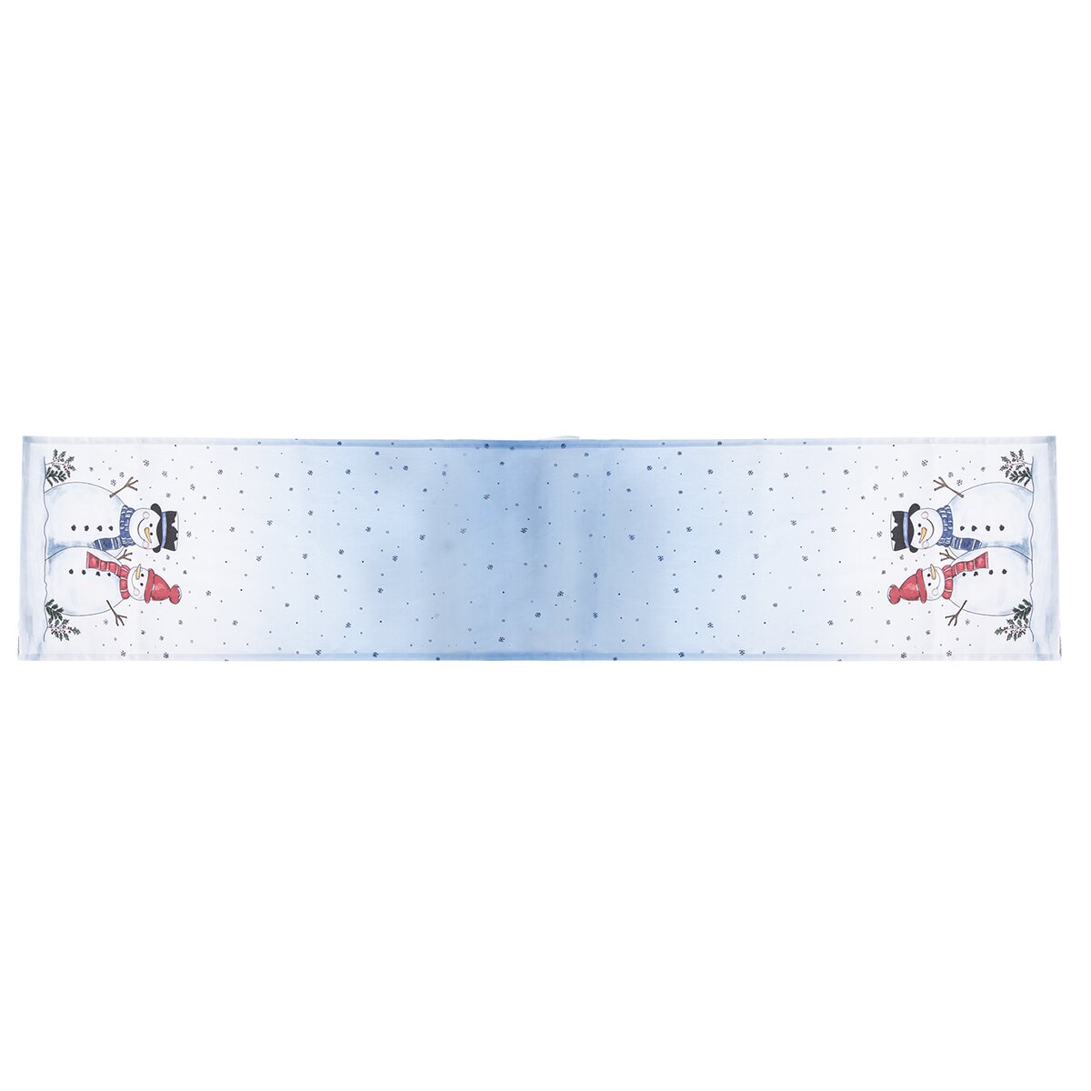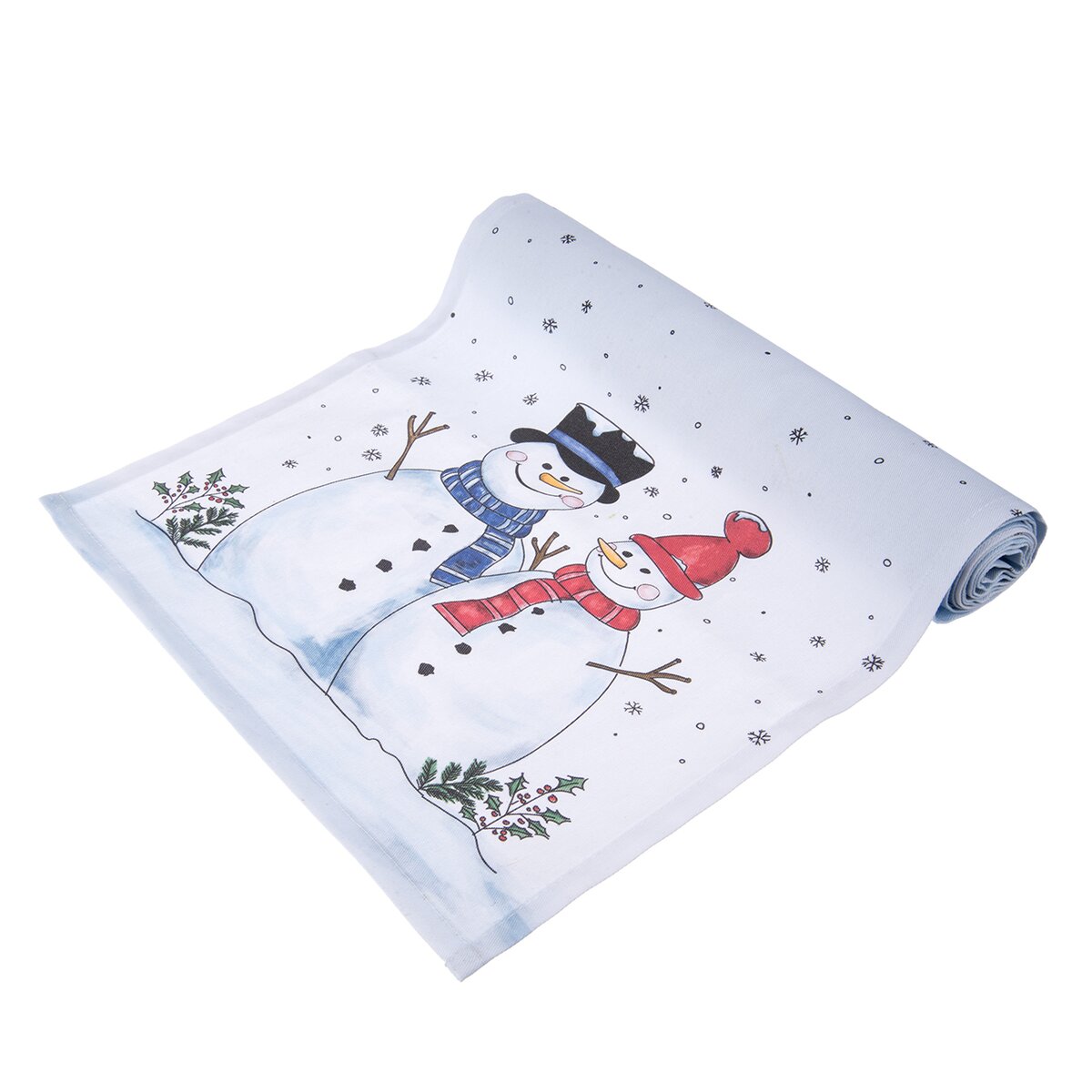Kód produktu 728093Světlý běhoun s motivem sněhuláků a poletujících sněhových vloček je vyroben ze 100% bavlny a ozdobí stůl v kuchyni, jídelně i obývacím pokoji v zimním období, v době Adventu a Vánoc.