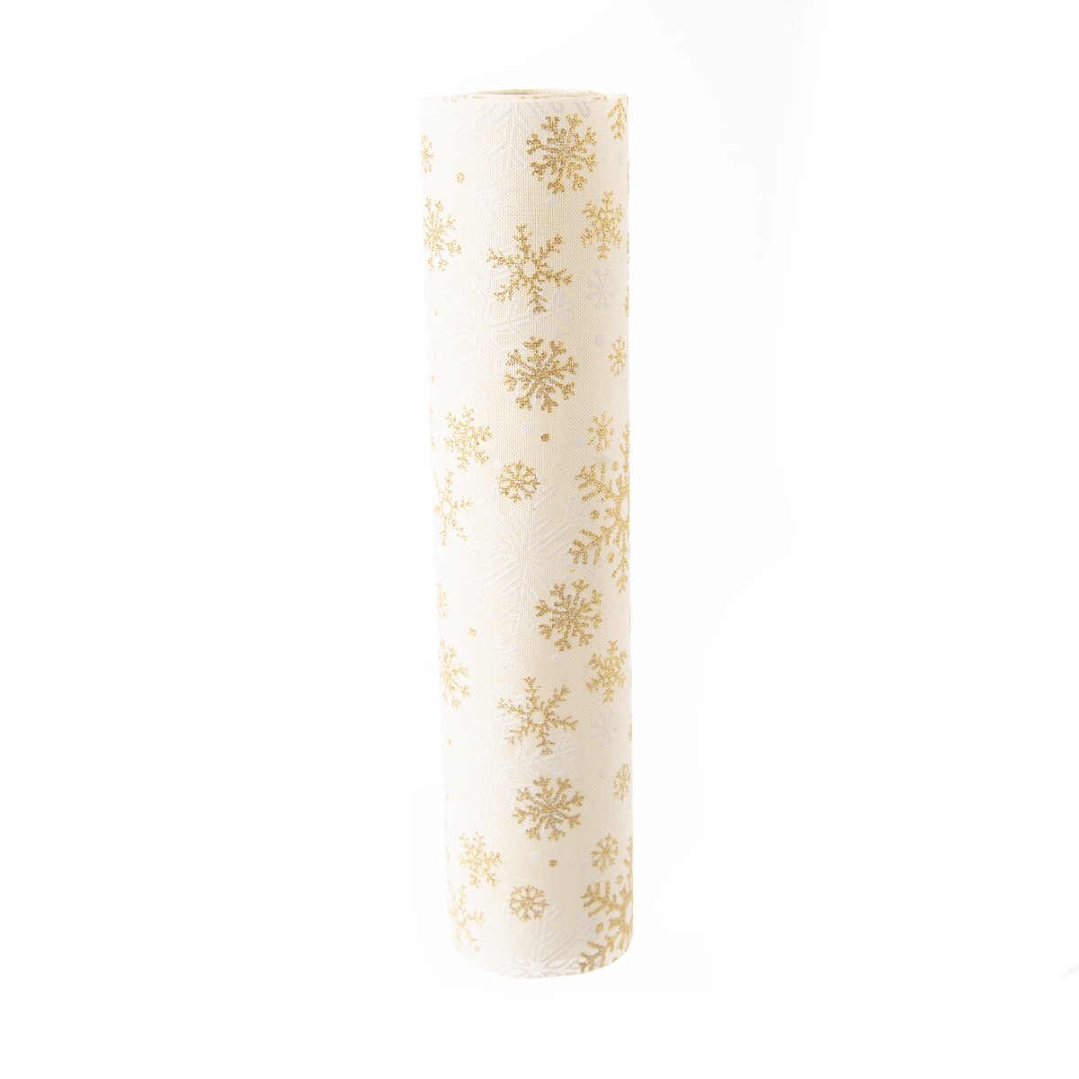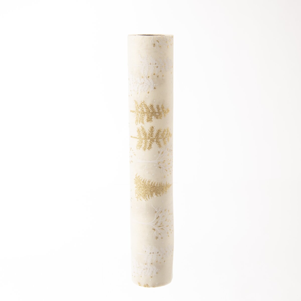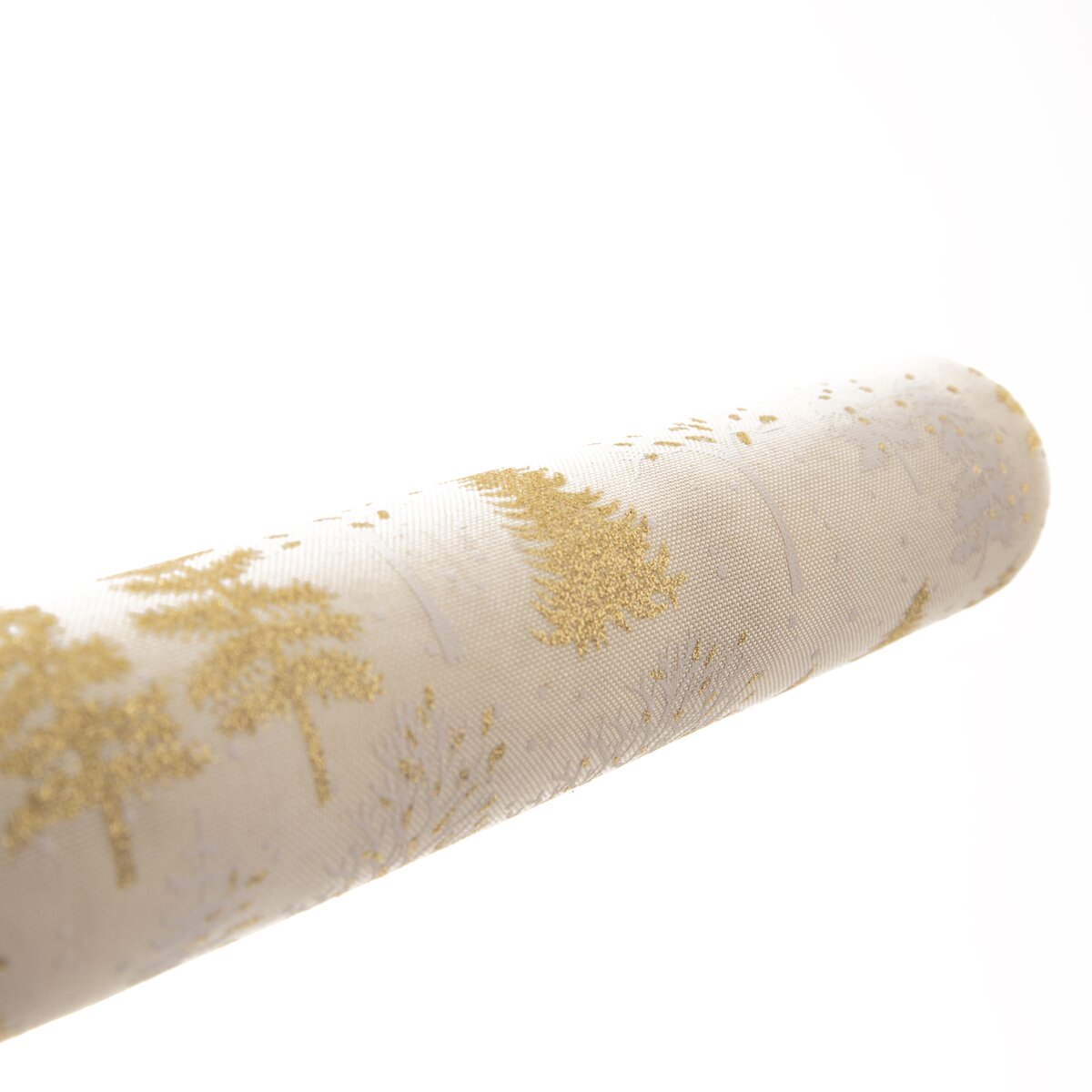 Kód produktu 728023Světlý běhoun s motivem bílých a zlatých stromečků a vloček, vyrobený z polyesteru, je určen na střed stolu. Ozdobí sváteční stůl v kuchyni, jídelně i obývacím pokoji.
