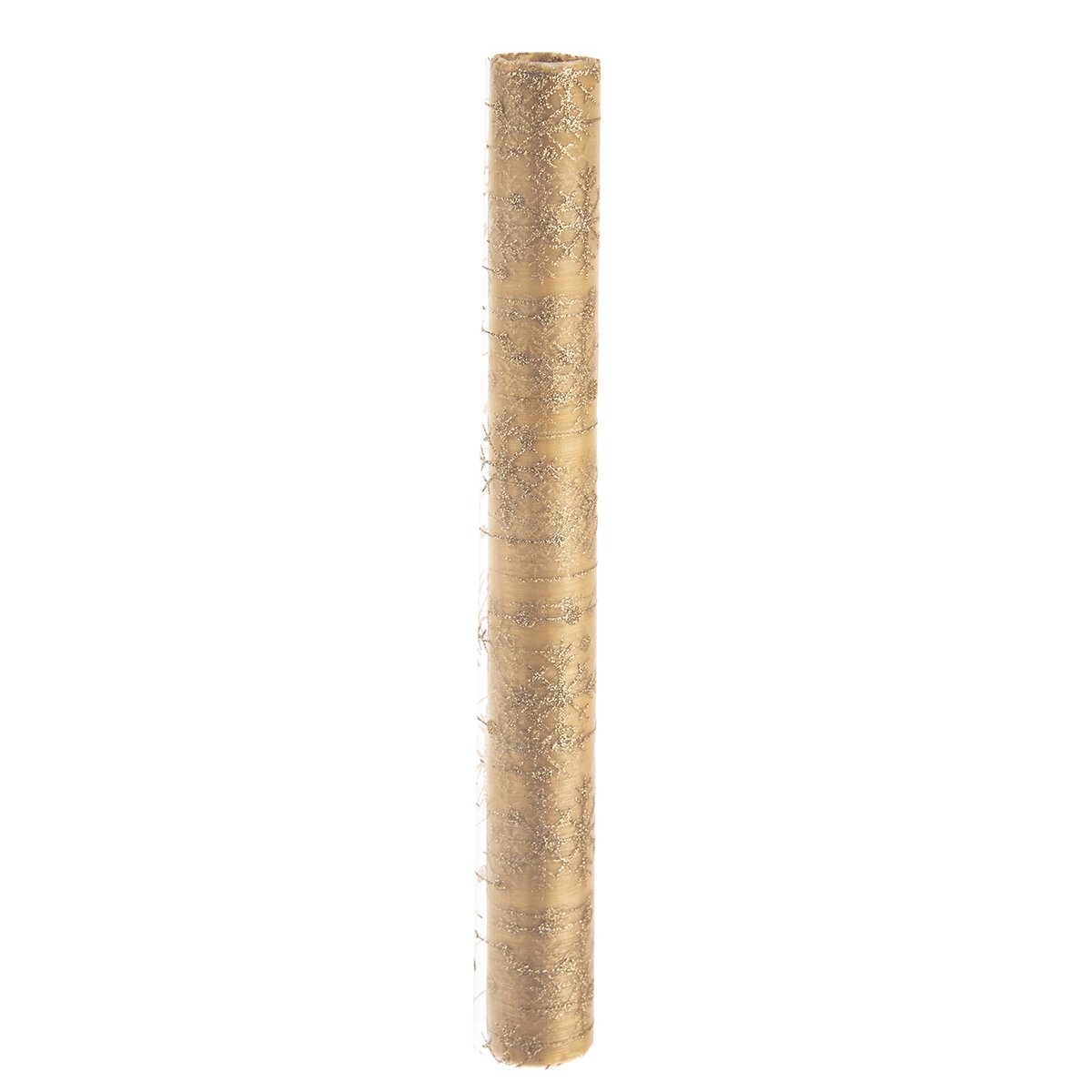 Kód produktu 728040Průhledný běhoun s motivem třpytivých zlatých vloček, vyrobený z polyesteru, je určen na střed stolu. Ozdobí sváteční stůl v kuchyni, jídelně i obývacím pokoji.