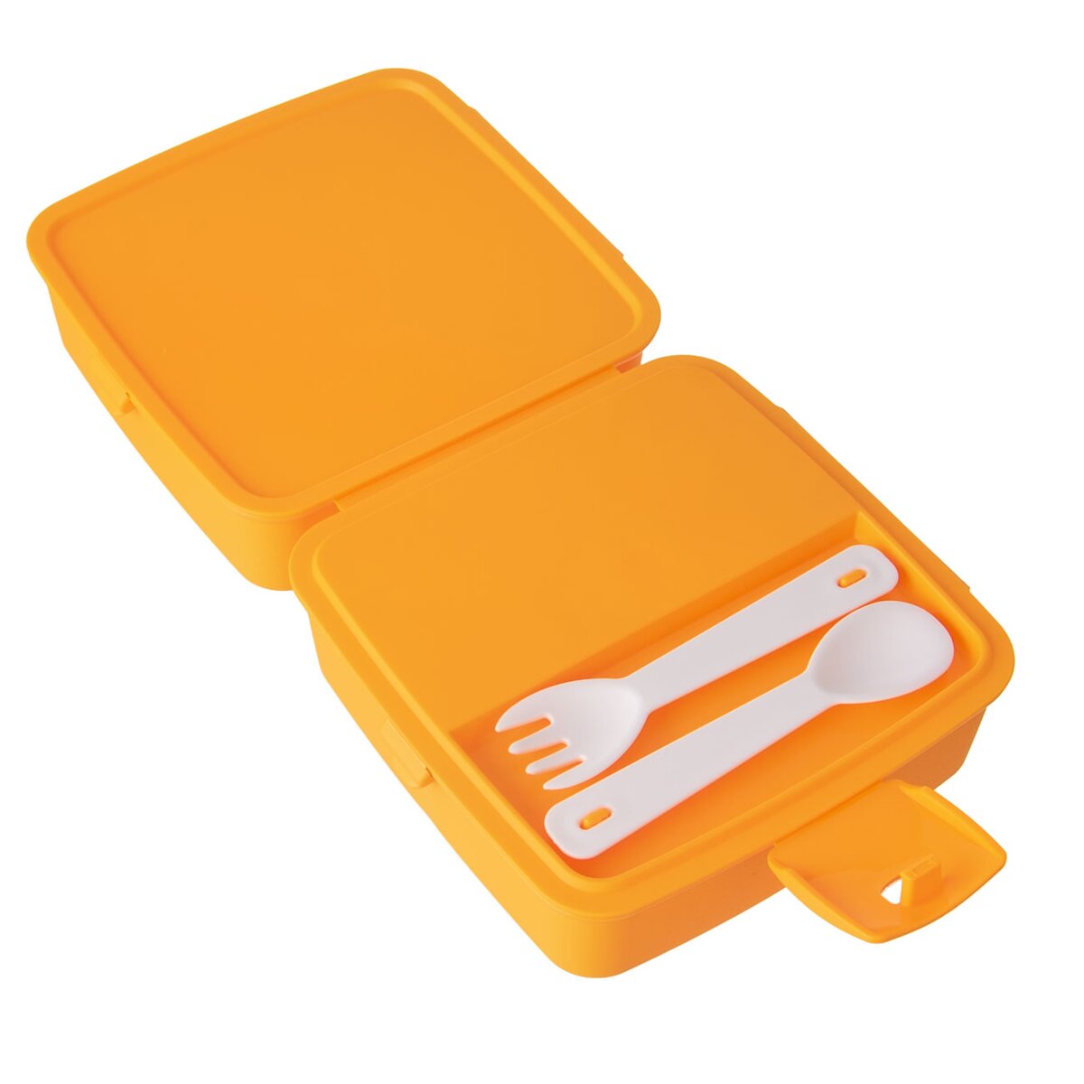 Dělený box na svačinu uloží potraviny, snadno je přepravíte, neosychají. Můžete využít také k uložení drobností. Součástí je malá lžička a vidlička. Materiál: plast. Barevný assort. Uzavírání na klip. Rozměry: 15x15x9 cm. Vhodný do MVT i myčky na nádobí.