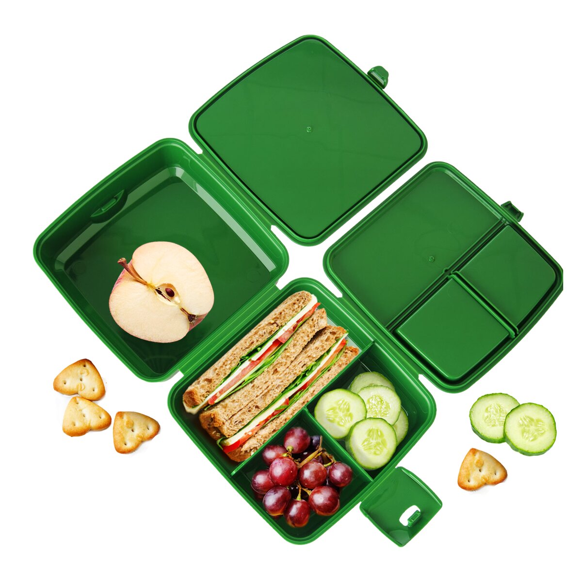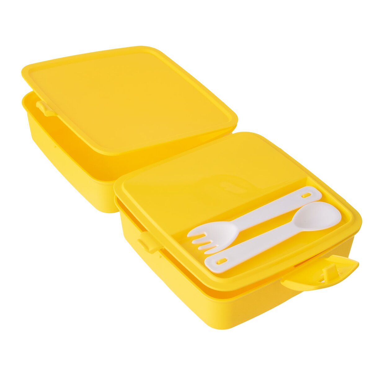 Kód produktu 127306Dělený box na svačinu uloží potraviny, snadno je přepravíte, neosychají. Můžete využít také k uložení drobností. Součástí je malá lžička a vidlička. Materiál: plast. Barevný assort. Uzavírání na klip. Rozměry: 15x15x9 cm. Vhodný do MVT i myčky na nádobí.