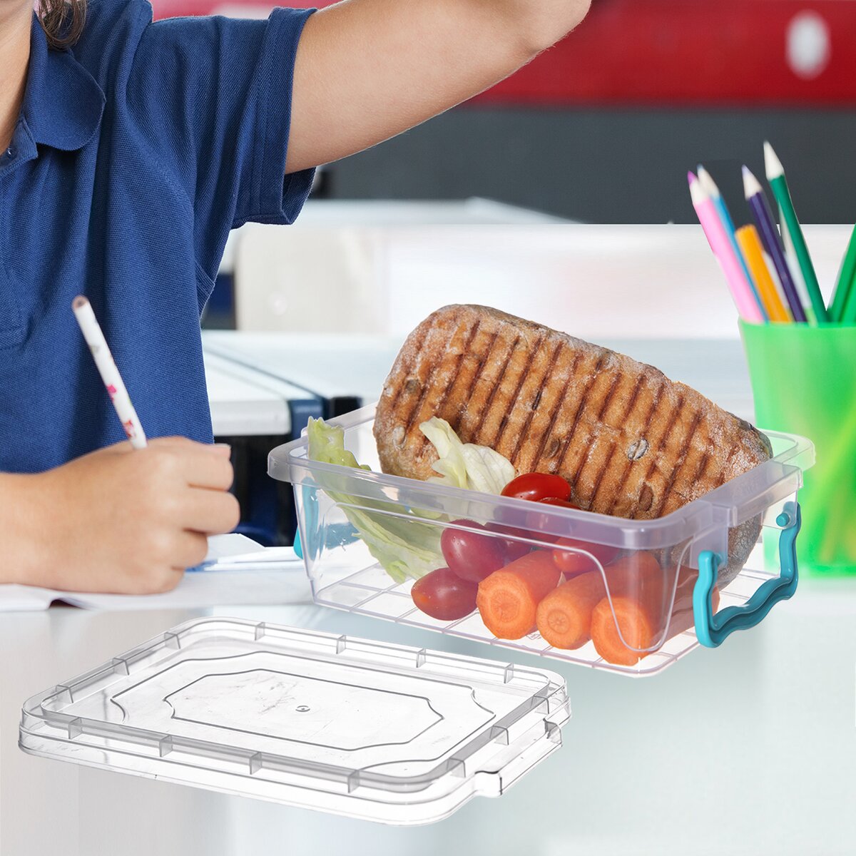 Boxy jsou transparentní, takže snadno poznáte, co se v nich zrovna nachází. K tomu mají pevné uzavírání na dva postranní klipy. Kromě kuchyně mohou posloužit i v koupelně nebo pracovně, kupříkladu jako dózy na šperky, gumičky, papírenské potřeby a další drobnosti.