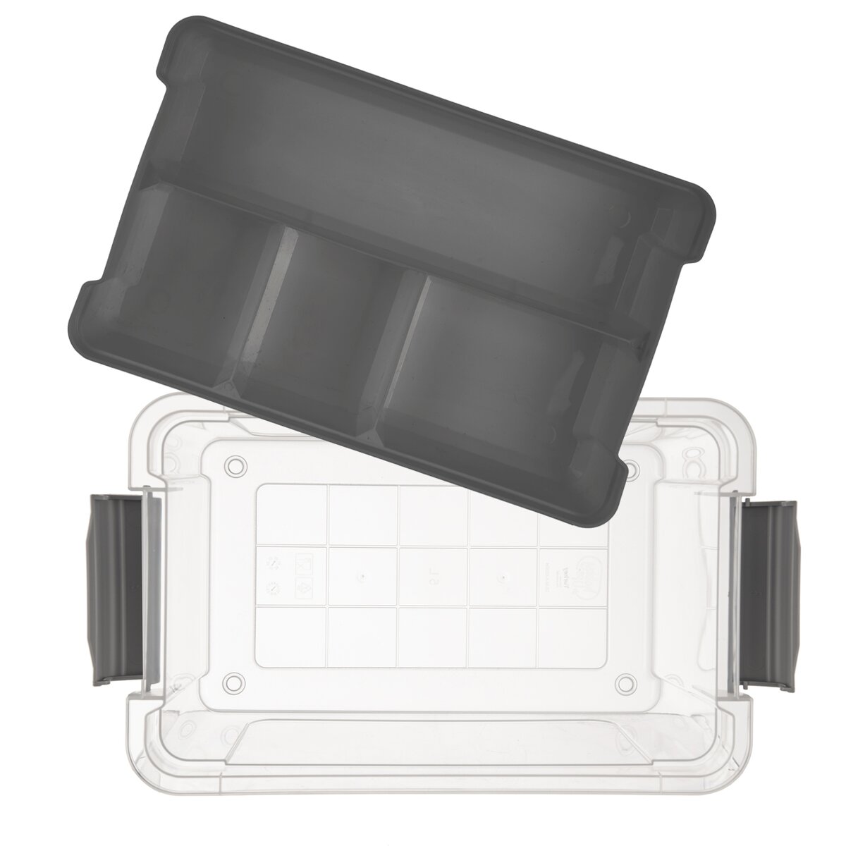 Vklad lze jednoduše vyjmout a pod ním ještě zbyde místo na další maličkosti. Je uzavřen víkem s postranními klipy a s držadlem určeným k přenášení. A pokud jich bude víc, snadno je naskládáte na sebe, díky průhlednému plastu PP budete mít přehled, co který box obsahuje.