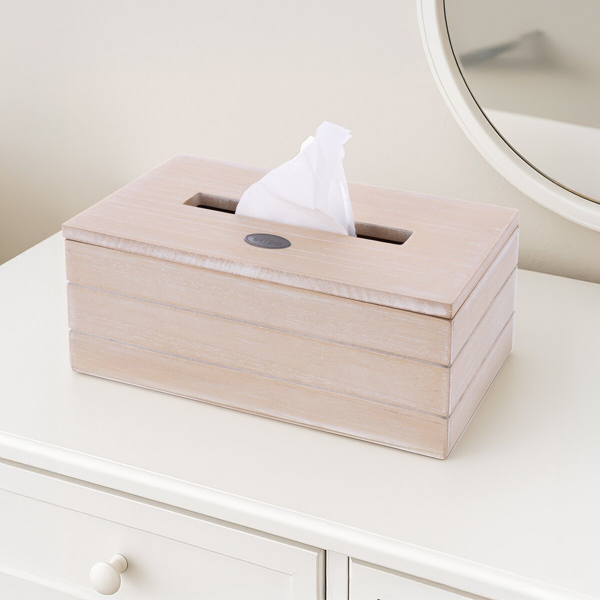 Kód produktu 811275Box v přírodním odstínu s jemnou bílou patinou slouží k uložení krabičky papírových kapesníků. Má podélný otvor v odklápěcím víku.