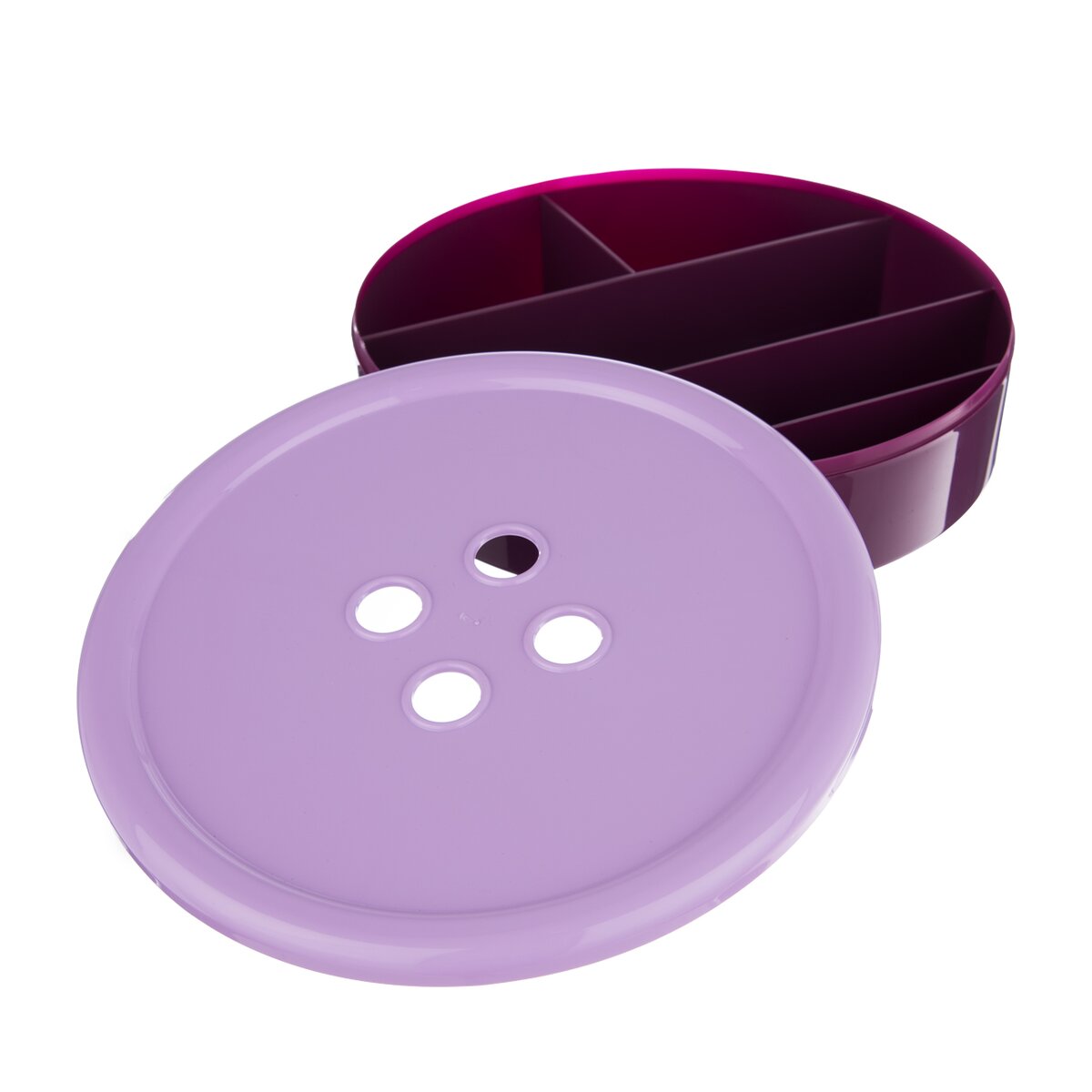 Box na šití pomůže urovnat do jednotlivých přihrádek základní šicí potřeby. Materiál: plast. Rozměry: pr. 24 cm, v. 6 cm.