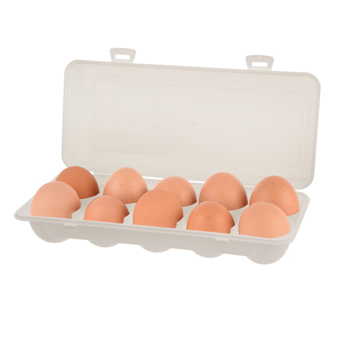 Hledáte-li praktičtější náhradu za papírový obal na vejce, tento bílý box zaručí bezpečné přenášení a skladování až deseti kusů vajec. Je vyrobený z kvalitního plastu PP, v případě znečištění ho proto stačí jednoduše omýt a znovu použít.