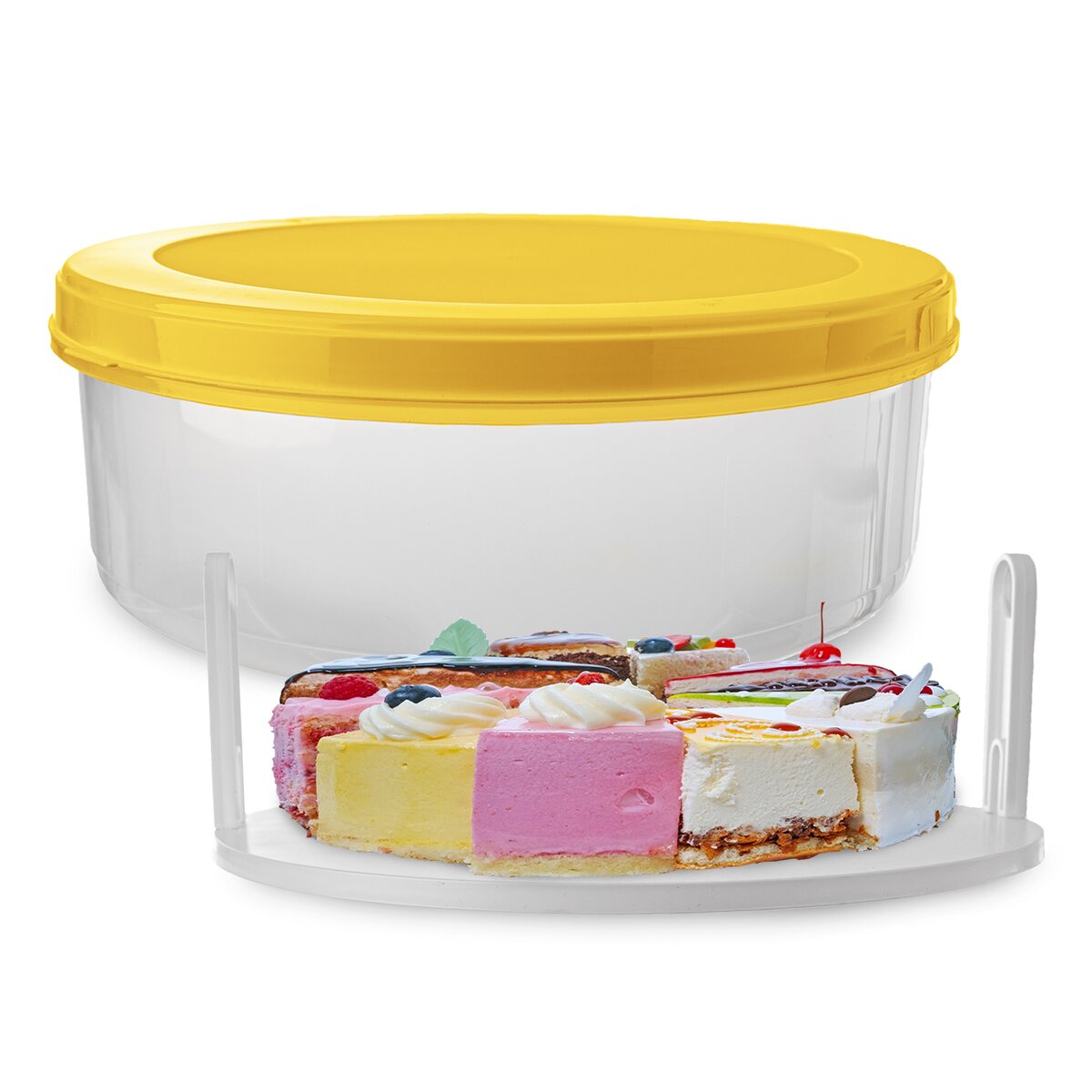 Více informacíPraktický kulatý plastový box s vyjímatelným vkladem, deskou s držadly, díky které můžete snadno a bezpečně přenášet dorty, koláče, zákusky, chlebíčky a další dobroty. Třeba na návštěvu, zahradní grilovačku s přáteli nebo oslavu příbuzných, kteří ocení vaše speciality. Po odklopení žlutého víka občerstvení lehce vyjmete pomocí vkladu a dvou držadel.