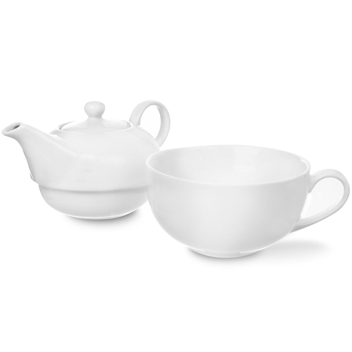 Kód produktu 127273Bílá porcelánová čajová souprava MONA tvořená hrnečkem o objemu 0,38 l a konvičkou o objemu 0,44 l.