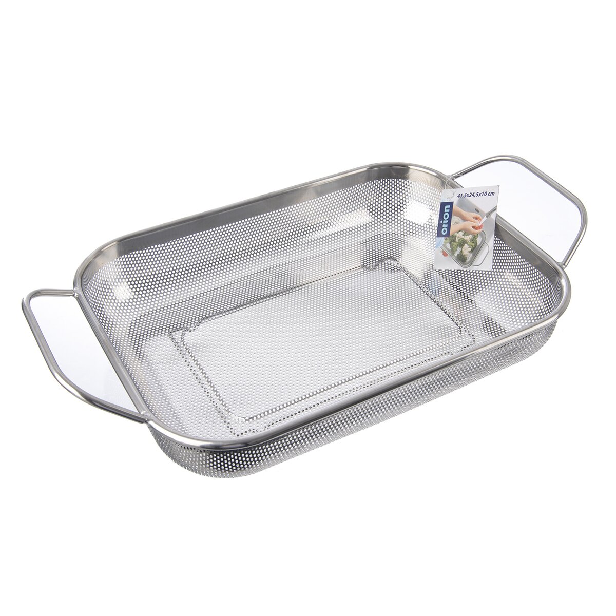 Cedník o celkové velikosti 41,5x24,5x10 cm včetně držadel se skvěle hodí také při grilování masa, klobás, zeleniny v troubě i na grilu. Nevkládejte ho však do přímého ohně, umístěte nad žár. Praktická jsou 2 držadla pro přenášení a také nožičky ze spodní strany. Při manipulaci s košíkem v troubě a na grilu použijte kuchyňské chňapky, nerezová držadla mohou být horká.
