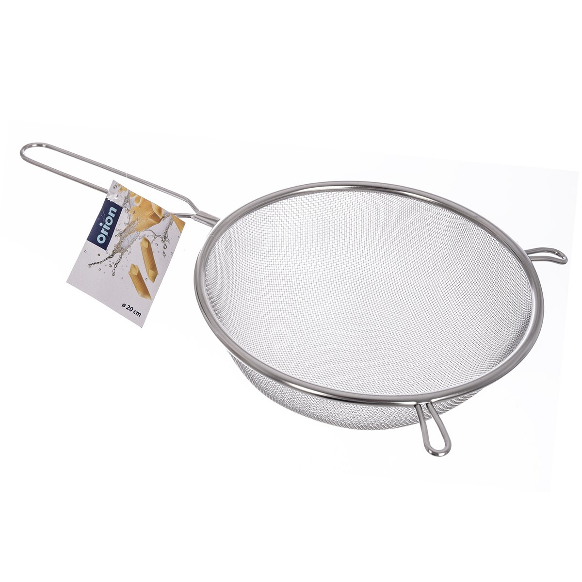 Kód produktu 124436Nerezový cedník o průměru 20 cm s jemnou síťkou, delší rukojetí a dvěma zarážkami.