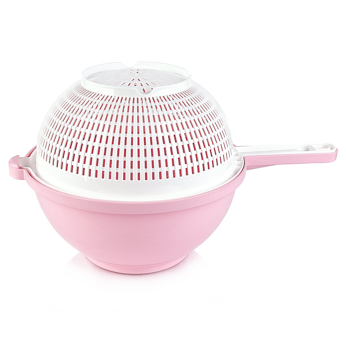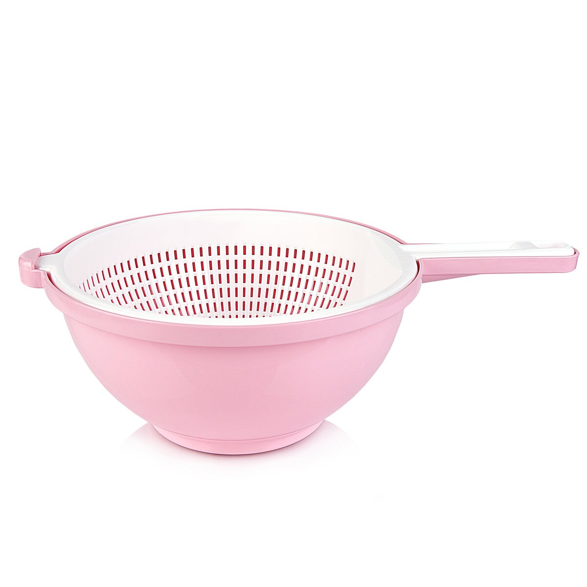 Kód produktu 124419Plastová miska o průměru 24 cm s vyjímatelným cedníkem. Obě nádoby jsou opatřeny delší rukojetí, za kterou je možné jejich zavěšení.