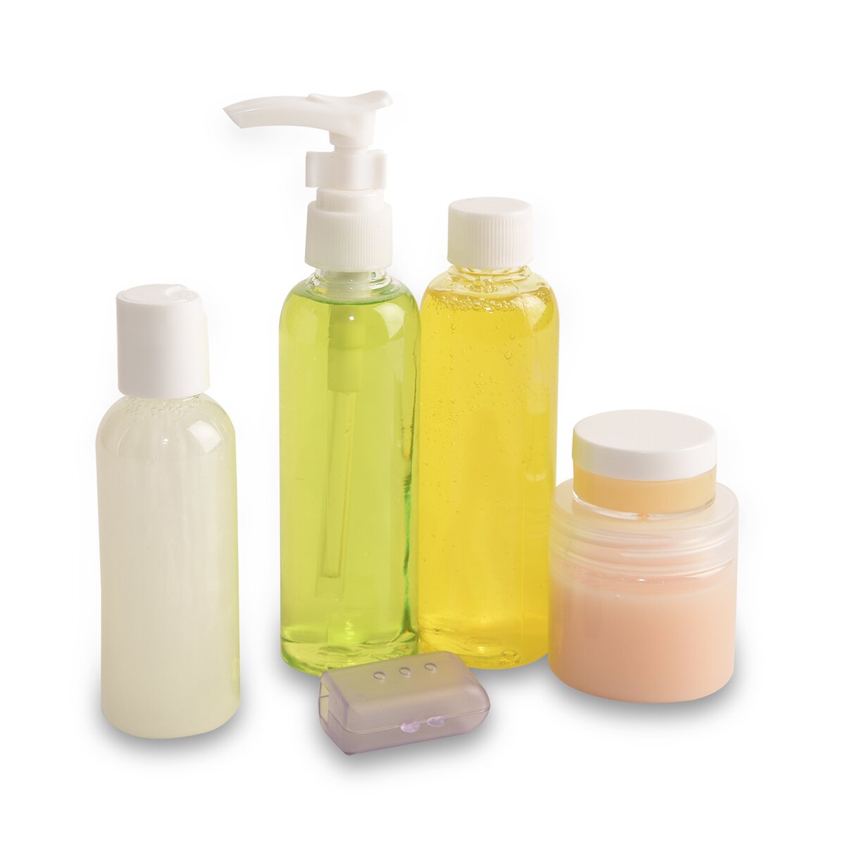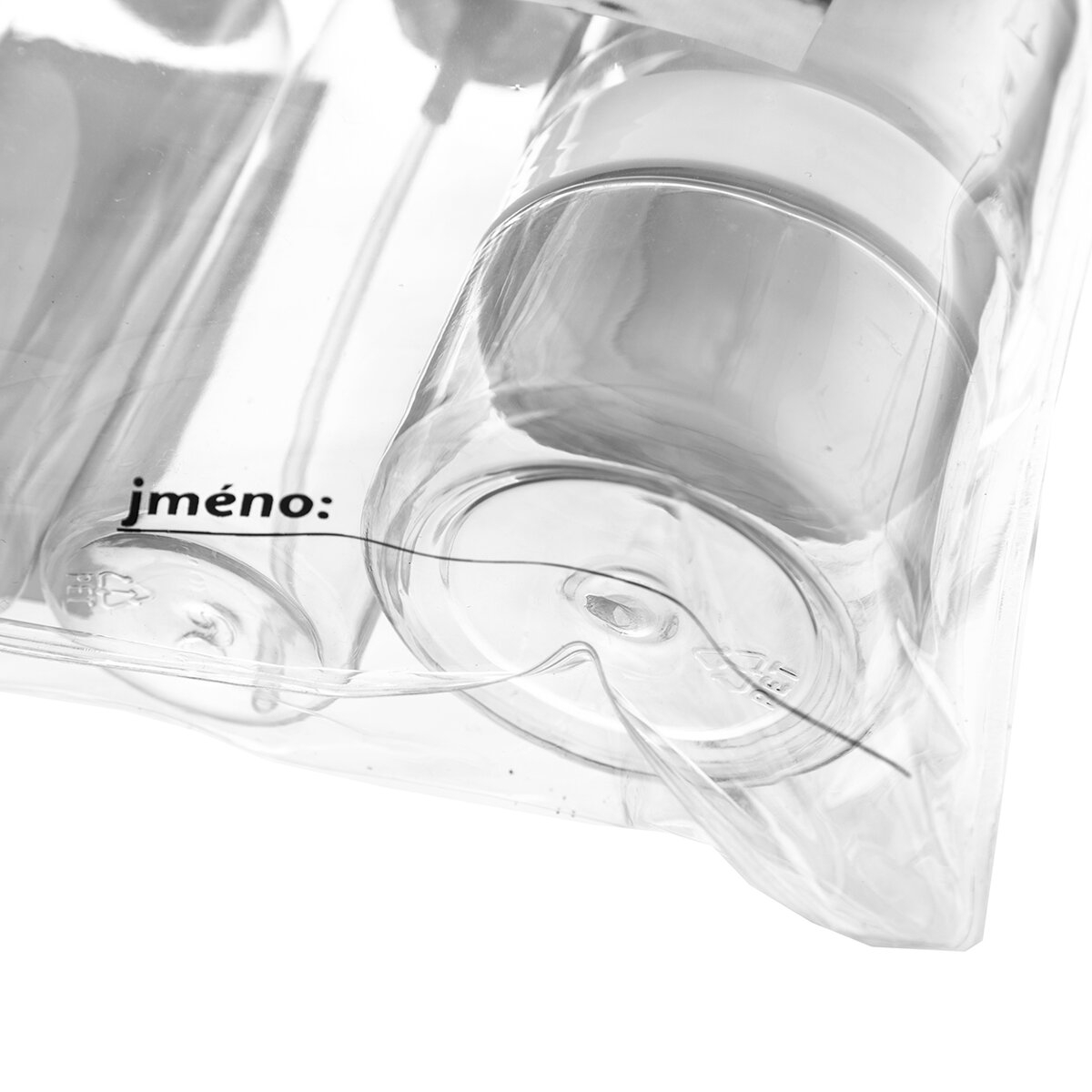 Lahvičky i dózy jsou z průhledného plastu a jejich maximální objem nepřekračuje 100 ml, splňují tedy kritéria pro příruční zavazadla v letadle.
