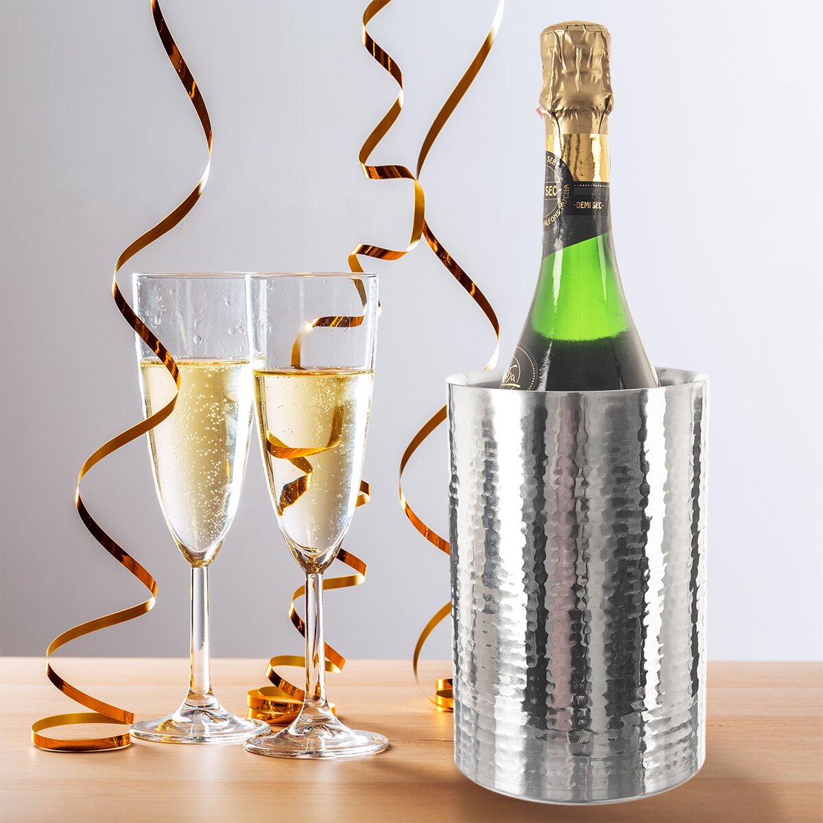 Jednoduše vložte nachlazenou láhev s nápojem do nádoby. Můžete ji také naplnit ledem. Dvouplášťové lesklé provedení oceníte jak na rodinné oslavě, při slavnostních událostech nebo romantické večeři s partnerem, kde se bude uprostřed stolu vyjímat i díky zajímavému plastickému povrchu.
