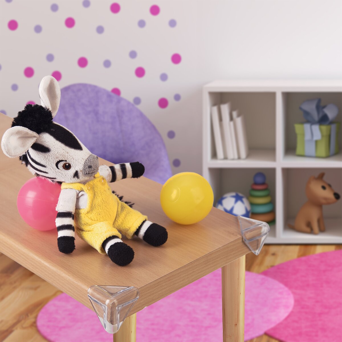 Jsou opatřeny oboustrannou lepicí páskou, tzn. 12 kusy trojúhelníkových transparentních samolepek. Snadno je nalepíte na roh nábytku a umístíte chrániče. Děti jsou totiž neustále v pohybu a jejich bezpečnost je pro každého rodiče prioritou.